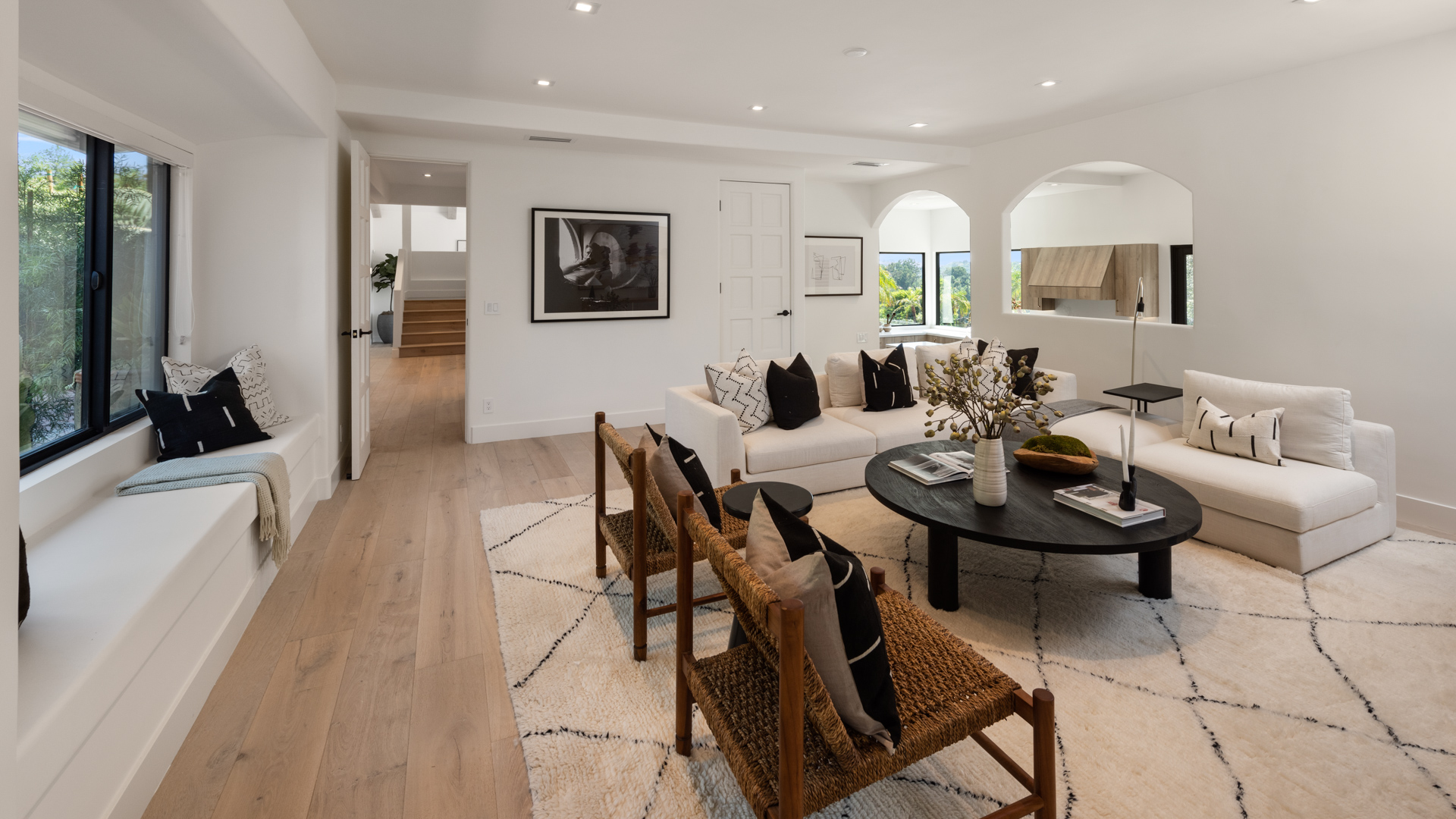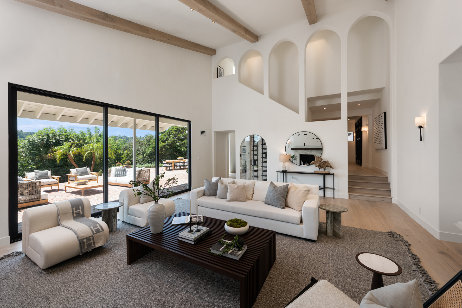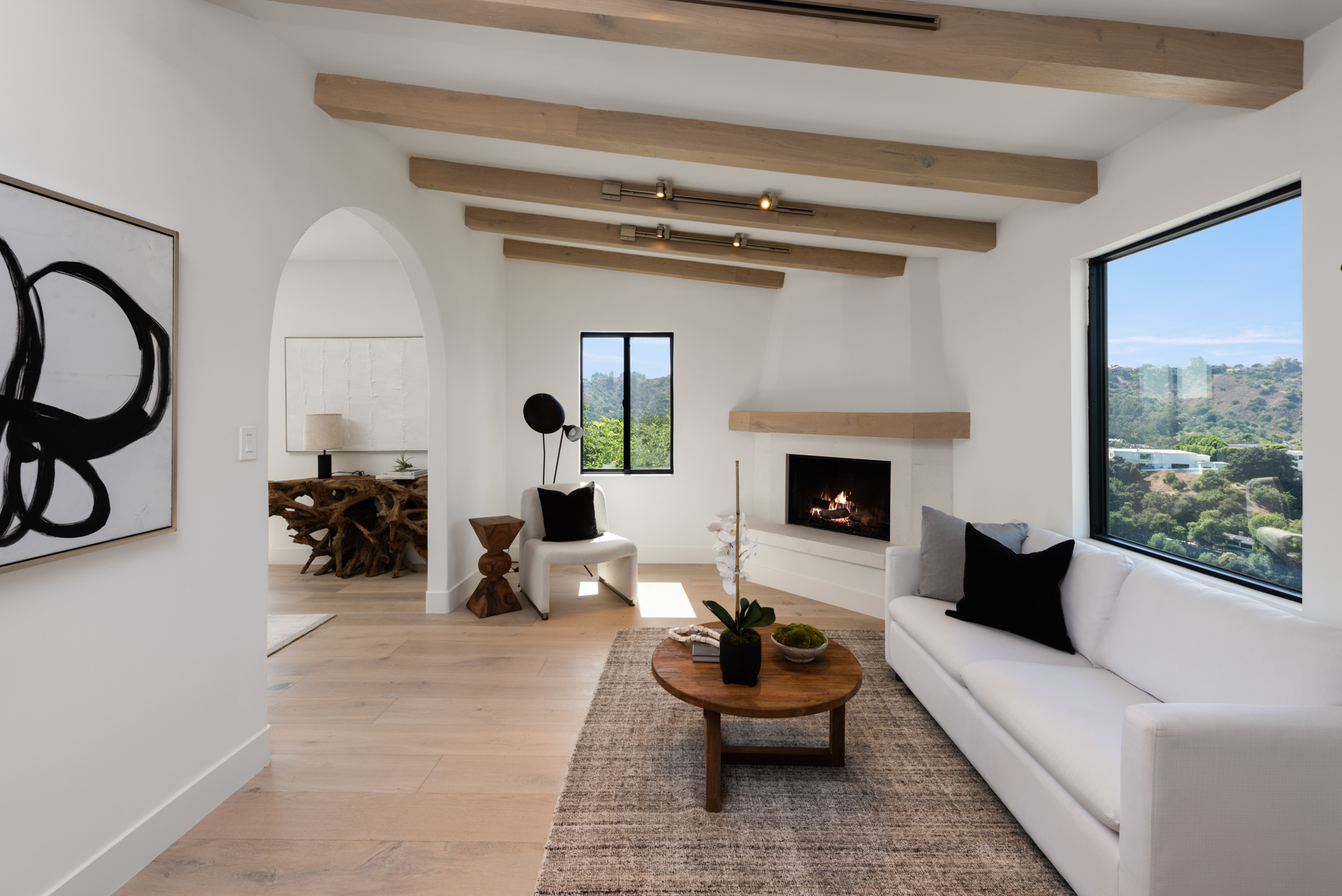 Located on the gated Oak Pass Road, one of the most charming streets near Beverly Park, this chic Spanish home blends classic character with a fresh contemporary aesthetic. Just minutes from the Beverly Hills Hotel and world-class dining, it offers resort-like living in a prime location. An expansive open floor plan is filled with natural light from floor-to-ceiling windows. The chef’s kitchen with top-tier appliances flows into the dining and family rooms, while the spacious living room offers seamless indoor/outdoor access. The primary suite features a fireplace, sitting room, walk-in closets, and a balcony with stunning canyon views. Outdoors, a private oasis awaits with a pool, spa, fire pit, lush landscaping, and dramatic vistas. A separate guest apartment includes its own living and sleeping areas, bath, and sauna. A rare chance to live in a peaceful retreat that feels worlds away yet is moments from it all.