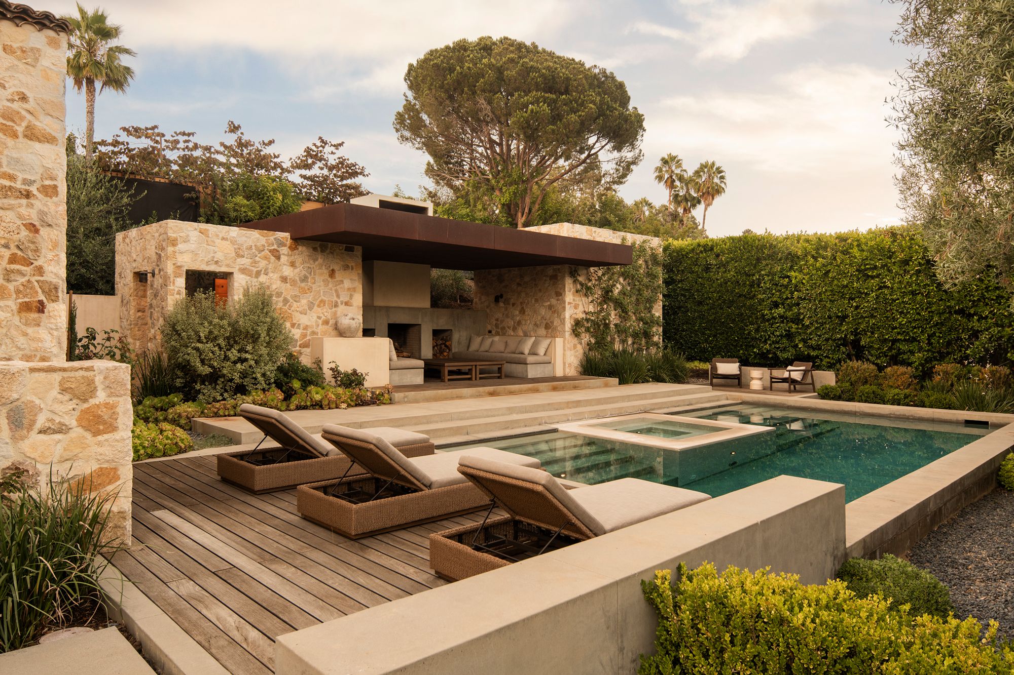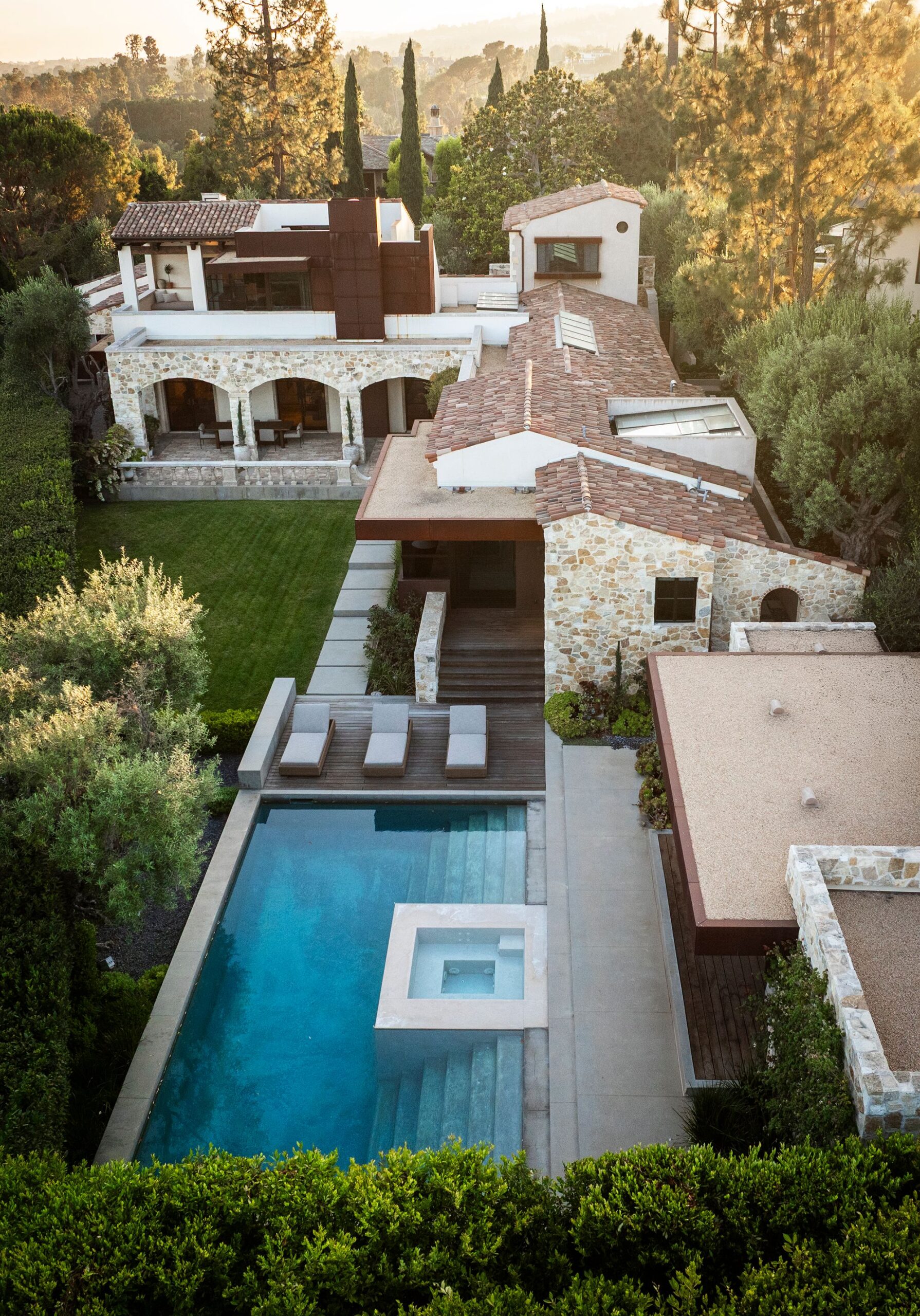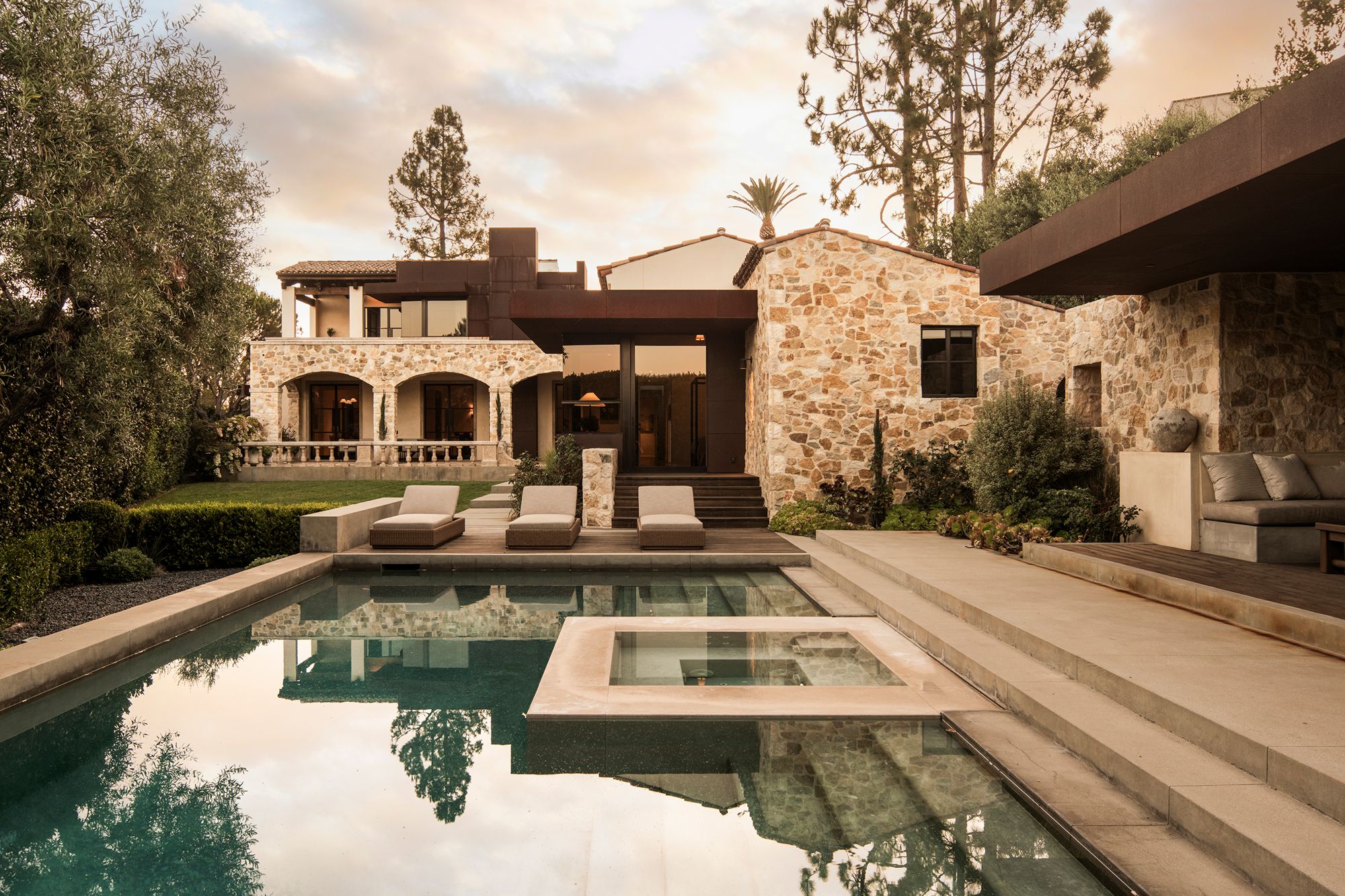 Alpine Ranch, located on one of the most prestigious streets in Beverly Hills, is a gated, custom-built Italian Villa originally designed by acclaimed architects Luis Ortega and Jose Fernandez. It has been fully reimagined as a brand-new home, impeccably redesigned and furnished by Amber Interiors. Every detail of this 5-bed, 5-bath estate has been thoughtfully upgraded, from fully renovated bathrooms, bedrooms, and living spaces to a comprehensive redesign by Amber Interiors. Their curated touches include bespoke furnishings, hand-thrown ceramics, artfully stacked books, and carefully layered textiles all included in the sale for a true turnkey experience. Interior highlights blend rustic charm with refined elegance, including exposed wood beam ceilings, steel-framed windows, and natural stone accents reminiscent of a countryside villa in the South of France. The main level is thoughtfully laid out with a sunlit formal living room that opens to a serene outdoor patio, an inviting dining room, and a chef's kitchen outfitted with Wolf appliances. Four bedrooms are located on this level, including a private primary wing that serves as a true retreat, featuring garden and pool views, a spa-quality bath with rain shower, freestanding tub, and overhead skylights that bathe the space in natural light. Upstairs, a separate private casita and an additional flex bedroom or gym open onto a generous covered balcony and rooftop deck. Set behind gates, the grounds are just as captivating as the interiors. A sprawling motor court offers ample parking for guests, while the expansive grassy yard, resort-style pool, and sun-drenched cabana invite effortless indoor-outdoor living. Thoughtful details like a private outdoor shower and a dedicated pool bathroom add both convenience and charm, creating a true sanctuary for relaxation and entertaining under the California sun.Just moments from the Beverly Hills Hotel and the world-class shopping, dining, and entertainment of Rodeo Drive, Alpine Ranch is a rare opportunity to own a fully furnished, design-forward estate in one of the most iconic neighborhoods in the world.