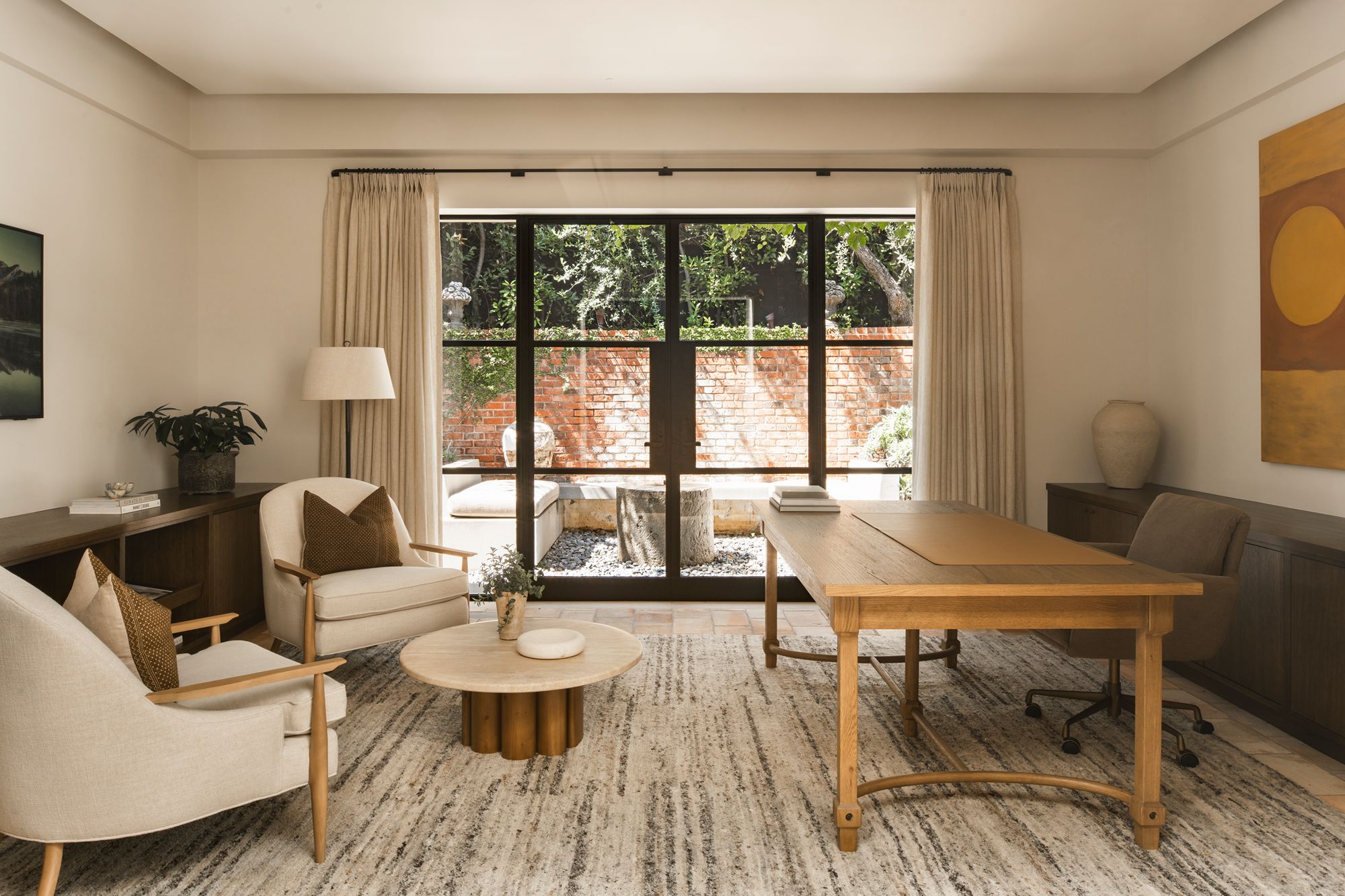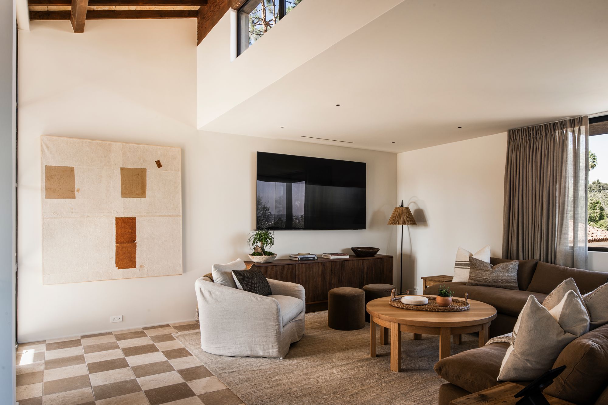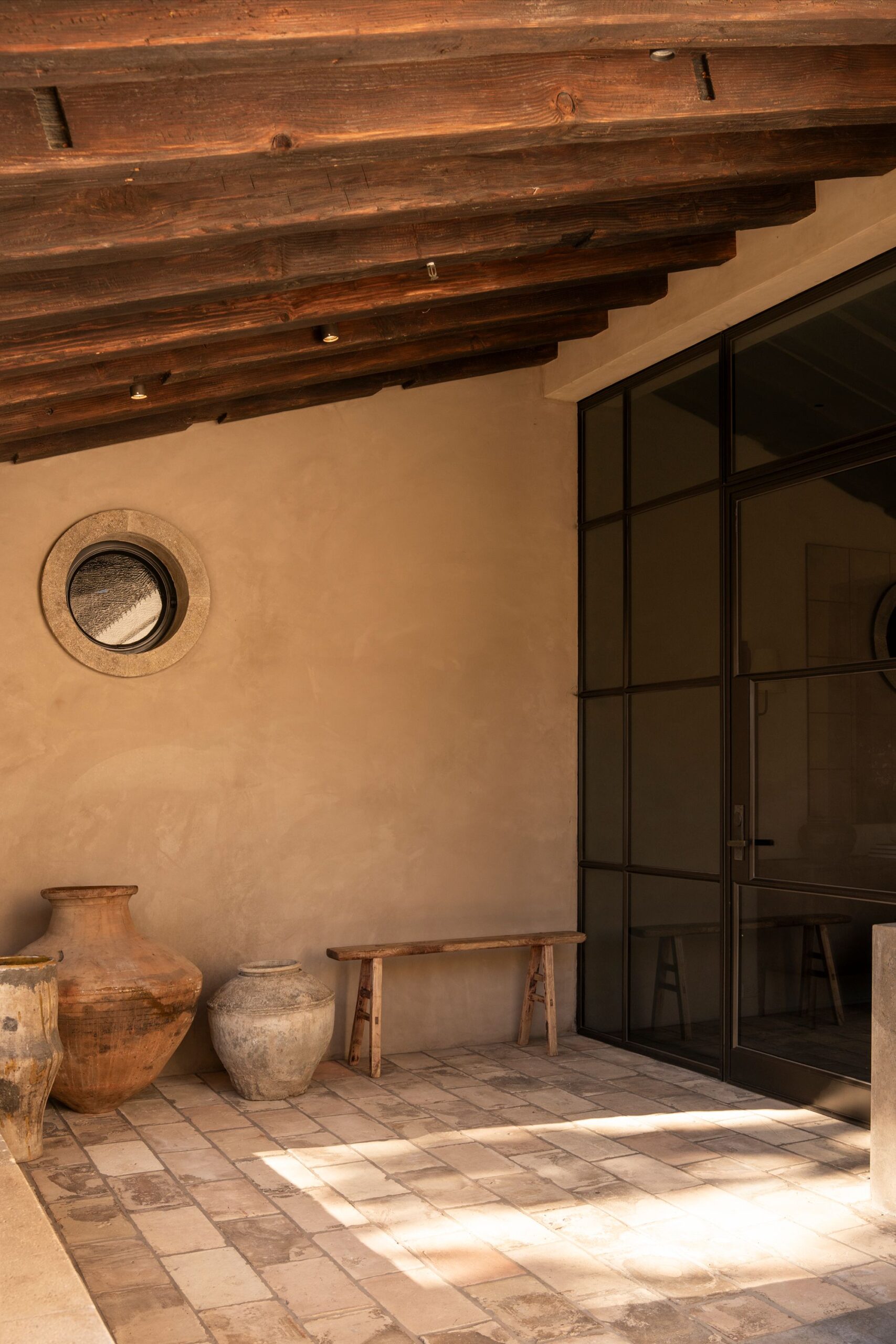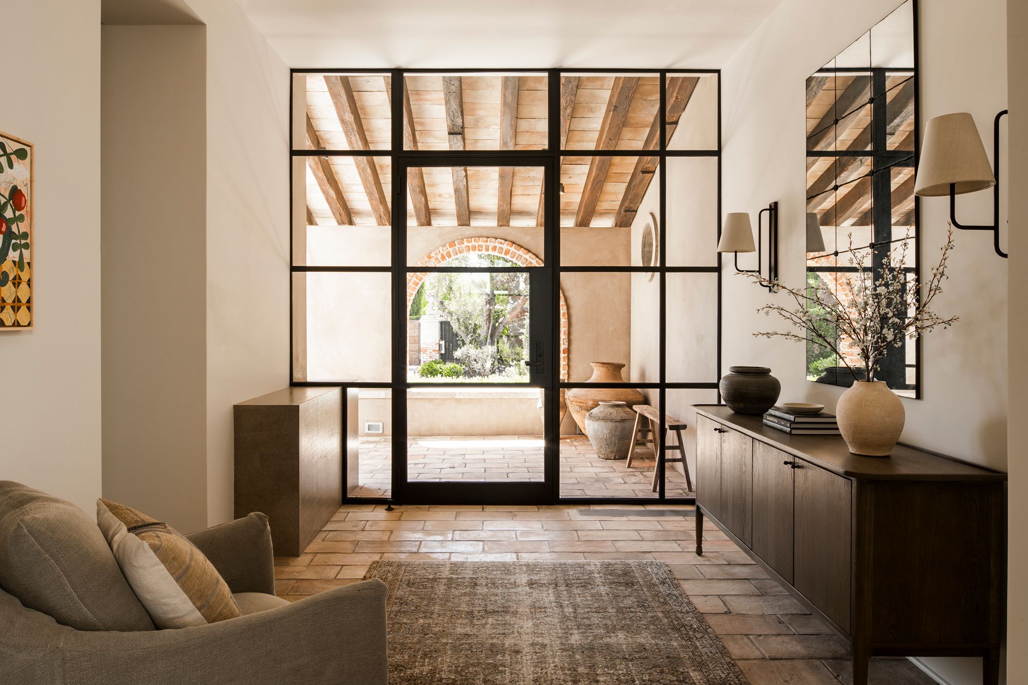Alpine Ranch, located on one of the most prestigious streets in Beverly Hills, is a gated, custom-built Italian Villa originally designed by acclaimed architects Luis Ortega and Jose Fernandez. It has been fully reimagined as a brand-new home, impeccably redesigned and furnished by Amber Interiors. Every detail of this 5-bed, 5-bath estate has been thoughtfully upgraded, from fully renovated bathrooms, bedrooms, and living spaces to a comprehensive redesign by Amber Interiors. Their curated touches include bespoke furnishings, hand-thrown ceramics, artfully stacked books, and carefully layered textiles all included in the sale for a true turnkey experience. Interior highlights blend rustic charm with refined elegance, including exposed wood beam ceilings, steel-framed windows, and natural stone accents reminiscent of a countryside villa in the South of France. The main level is thoughtfully laid out with a sunlit formal living room that opens to a serene outdoor patio, an inviting dining room, and a chef's kitchen outfitted with Wolf appliances. Four bedrooms are located on this level, including a private primary wing that serves as a true retreat, featuring garden and pool views, a spa-quality bath with rain shower, freestanding tub, and overhead skylights that bathe the space in natural light. Upstairs, a separate private casita and an additional flex bedroom or gym open onto a generous covered balcony and rooftop deck. Set behind gates, the grounds are just as captivating as the interiors. A sprawling motor court offers ample parking for guests, while the expansive grassy yard, resort-style pool, and sun-drenched cabana invite effortless indoor-outdoor living. Thoughtful details like a private outdoor shower and a dedicated pool bathroom add both convenience and charm, creating a true sanctuary for relaxation and entertaining under the California sun.Just moments from the Beverly Hills Hotel and the world-class shopping, dining, and entertainment of Rodeo Drive, Alpine Ranch is a rare opportunity to own a fully furnished, design-forward estate in one of the most iconic neighborhoods in the world.