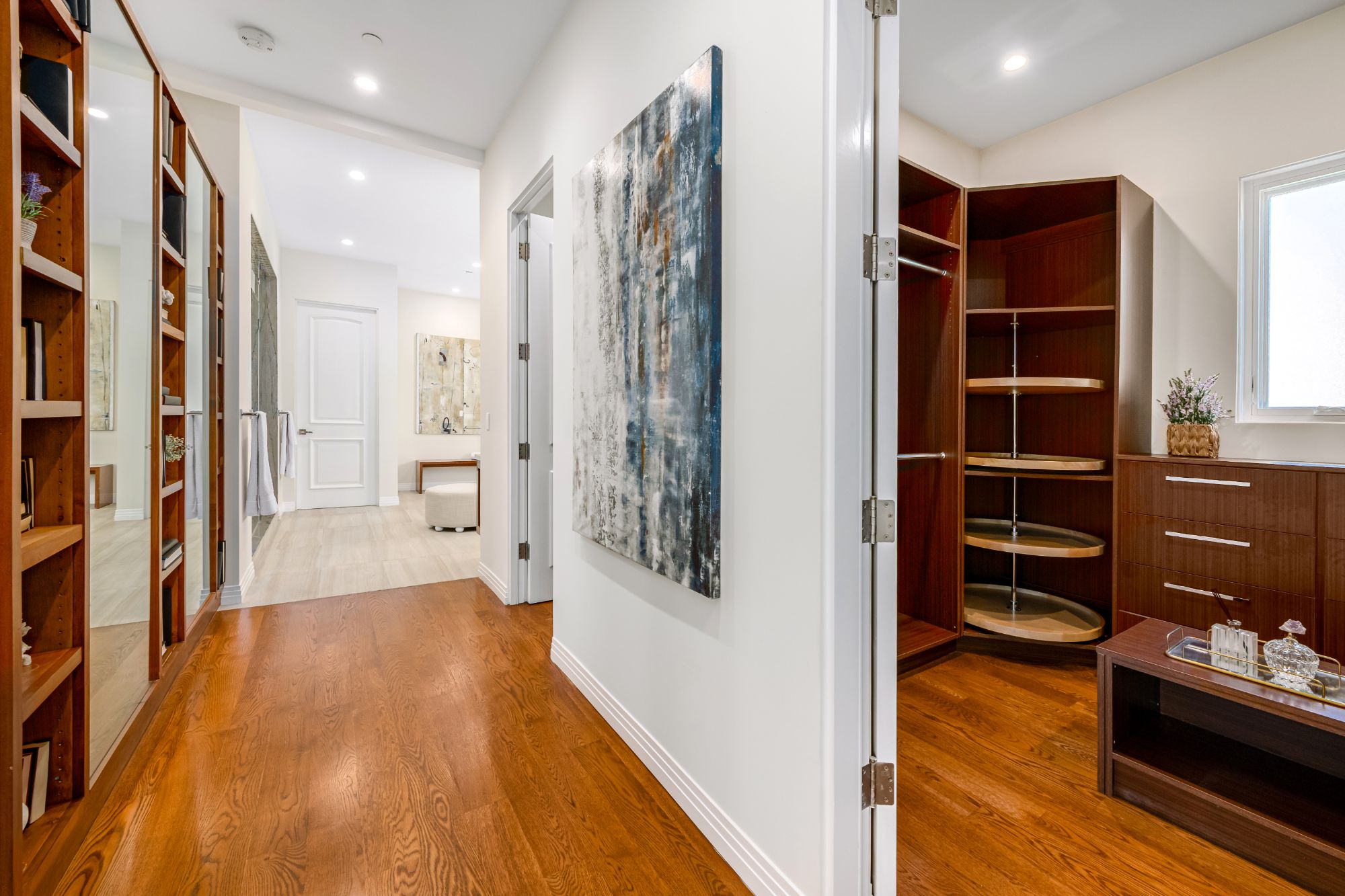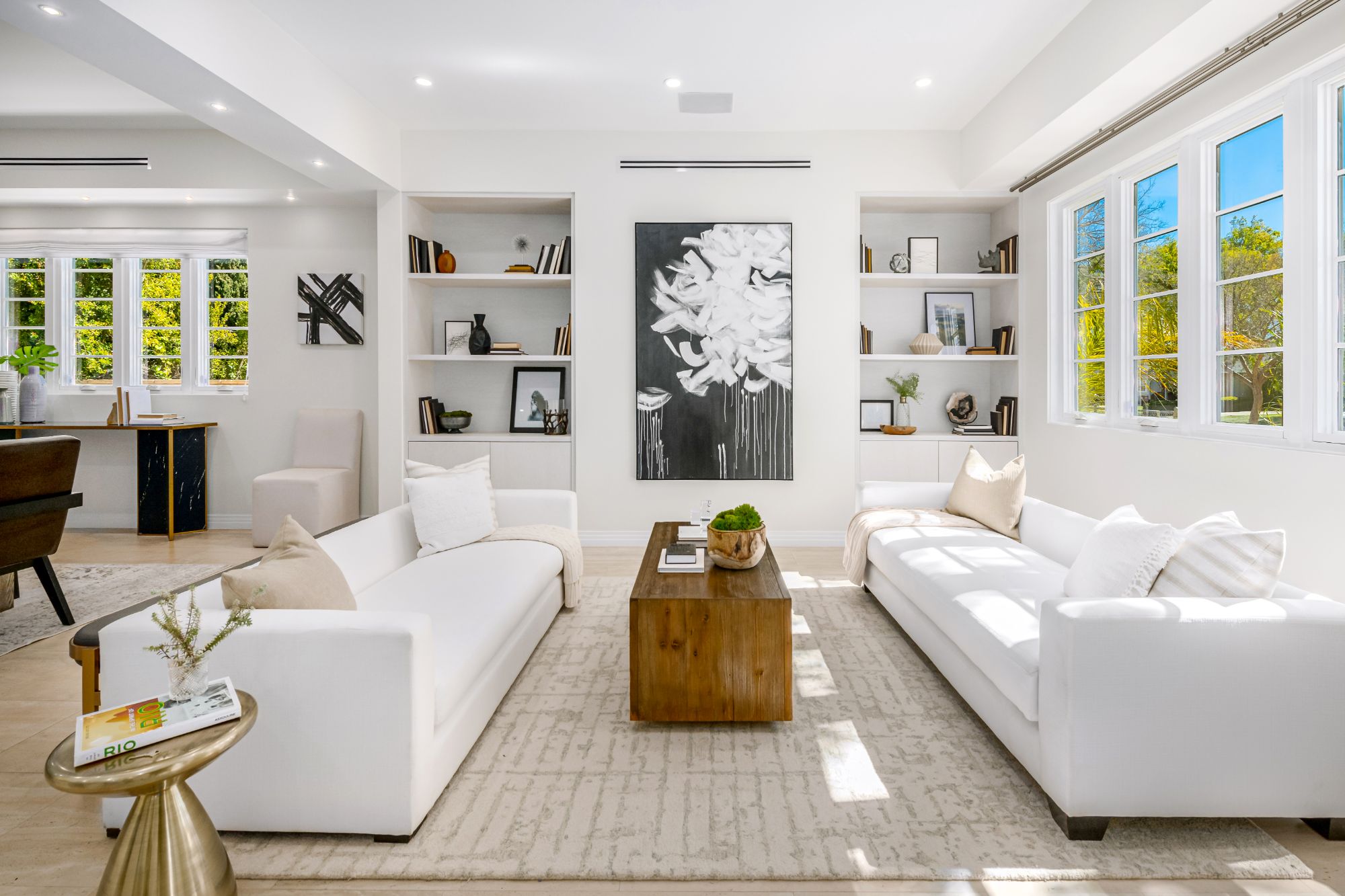 On a pristine large flat lot, this brand-new contemporary home with luxurious custom finishes is the cut above the rest on one of the most prestigious streets in Beverlywood. Beyond a charming front yard is a quintessential dream home that radiates warmth and tranquility with organic finishes such as limestone porcelain and wood cabinetry. Living room and office with elegant open floor plans open up to its lush outdoor areas through large French doors for perfect indoor-outdoor living. This entertaining oasis boasts a gourmet kitchen with Viking appliances and a verdant backyard with BBQ, wet bar and alfresco dining. 5 bedrooms with en suite bathrooms featuring marble counter-tops and custom-made cabinets. Exquisite French oak flooring and an expansive balcony enhances the upper level. The luxe primary showcases an oversized walk-in closet, a spa-like bathroom with a steam shower, gorgeous soaking tub and UV sauna with integrated media player. Come experience one of the finest new homes in Beverlywood near the trendiest destinations in the city.