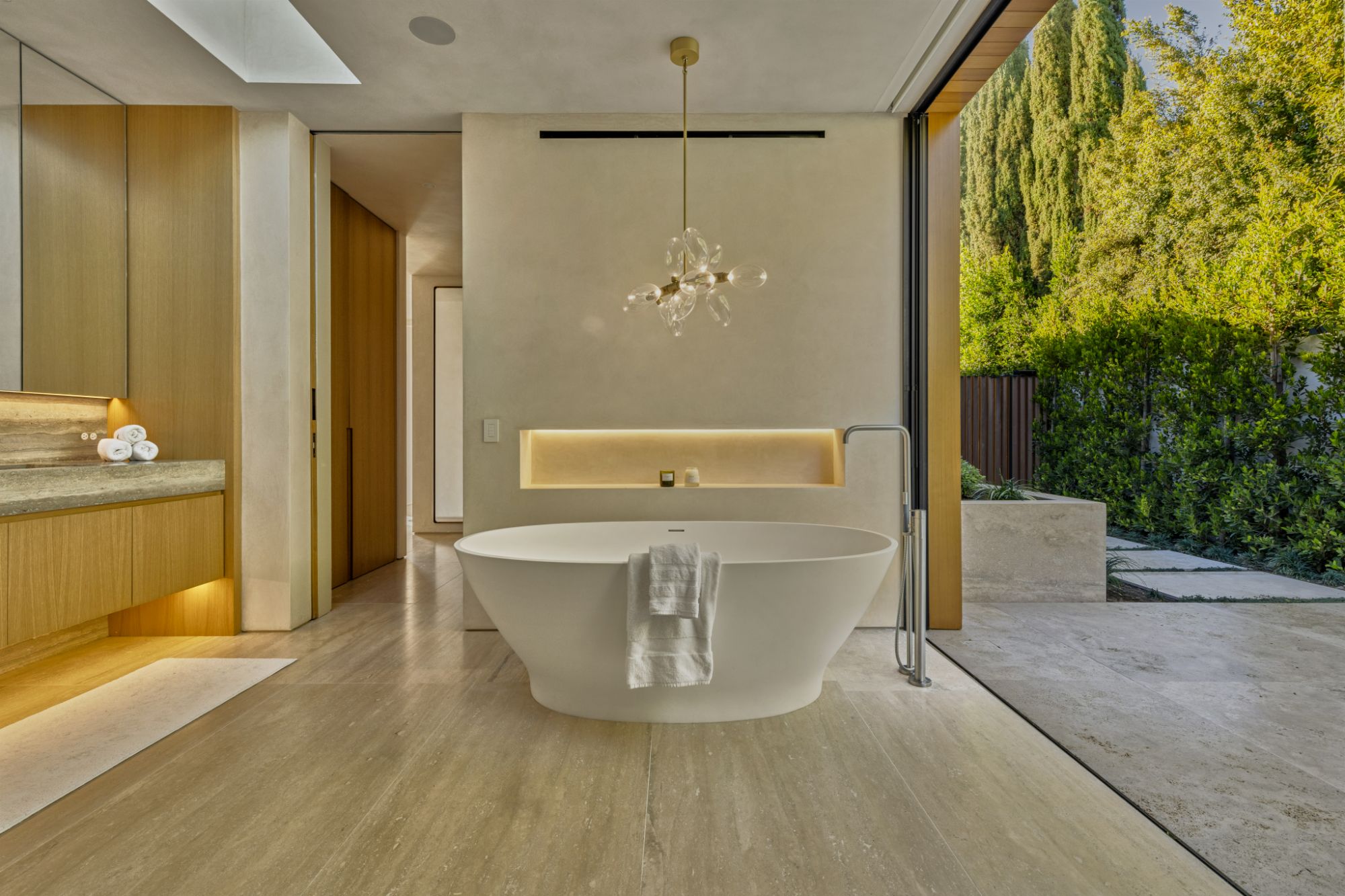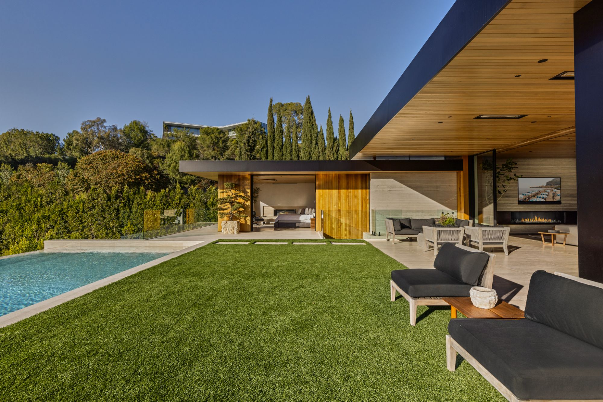 Fully reimagined Bel-Air estate set on Linda Flora Drive with panoramic views of the ocean, canyon, and Getty Center. With over 7,000sqft, The Navona House was recently completed by Carlos Carrasquillo of Wolcott Architecture with the interiors by famed designer, Trip Haenisch. Designer finishes throughout including Travertine floors imported from Italy. Floor-to-ceiling Otiima windows and doors that pocket for indoor/outdoor living. Ample space with 5 bedrooms and 6 bathrooms, including a guest suite with private entrance. Primary suite offers views, coffee bar, spa-like bathroom, and dual closets. Outdoor oasis has 2 levels of flat grassy lawn, infinity pool with spa, and sunken fire pit with views. Additional amenities include 2 electric car chargers, and all new systems installed in 2024 including water filtration system, Savant home automation system, Lutron lighting, and Mitsubishi heat/HVAC system. A rare blend of contemporary design and timeless elegance, this fully reimagined Bel-Air estate offers an unparalleled lifestyle of luxury, comfort, and sophistication - all set against one of the most breathtaking backdrops in Los Angeles.