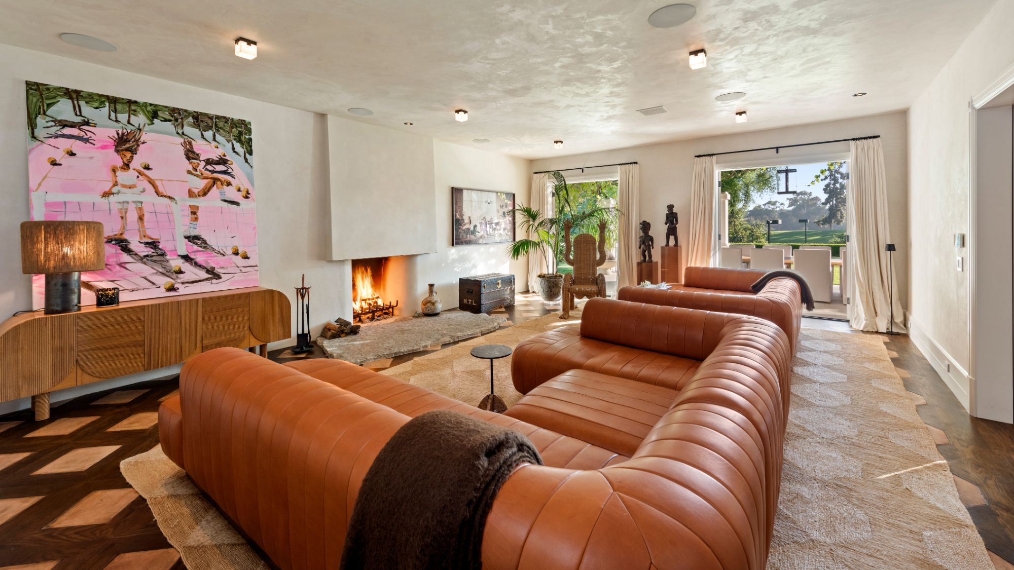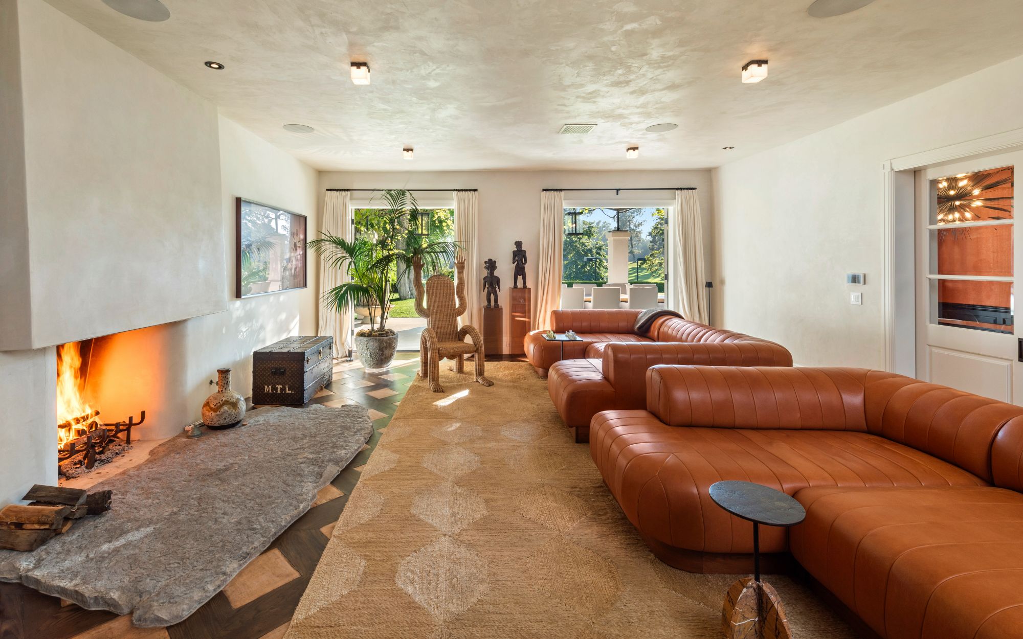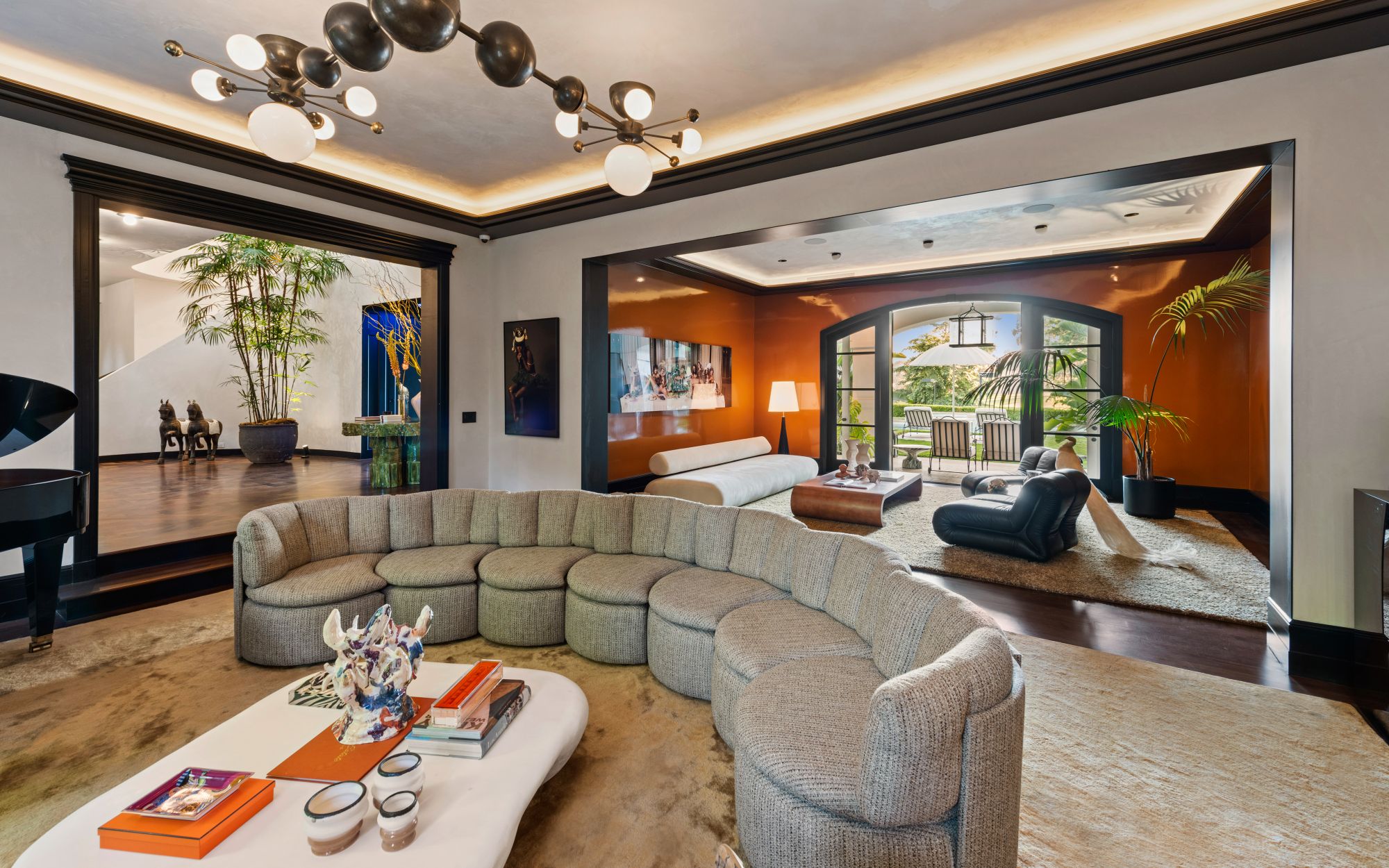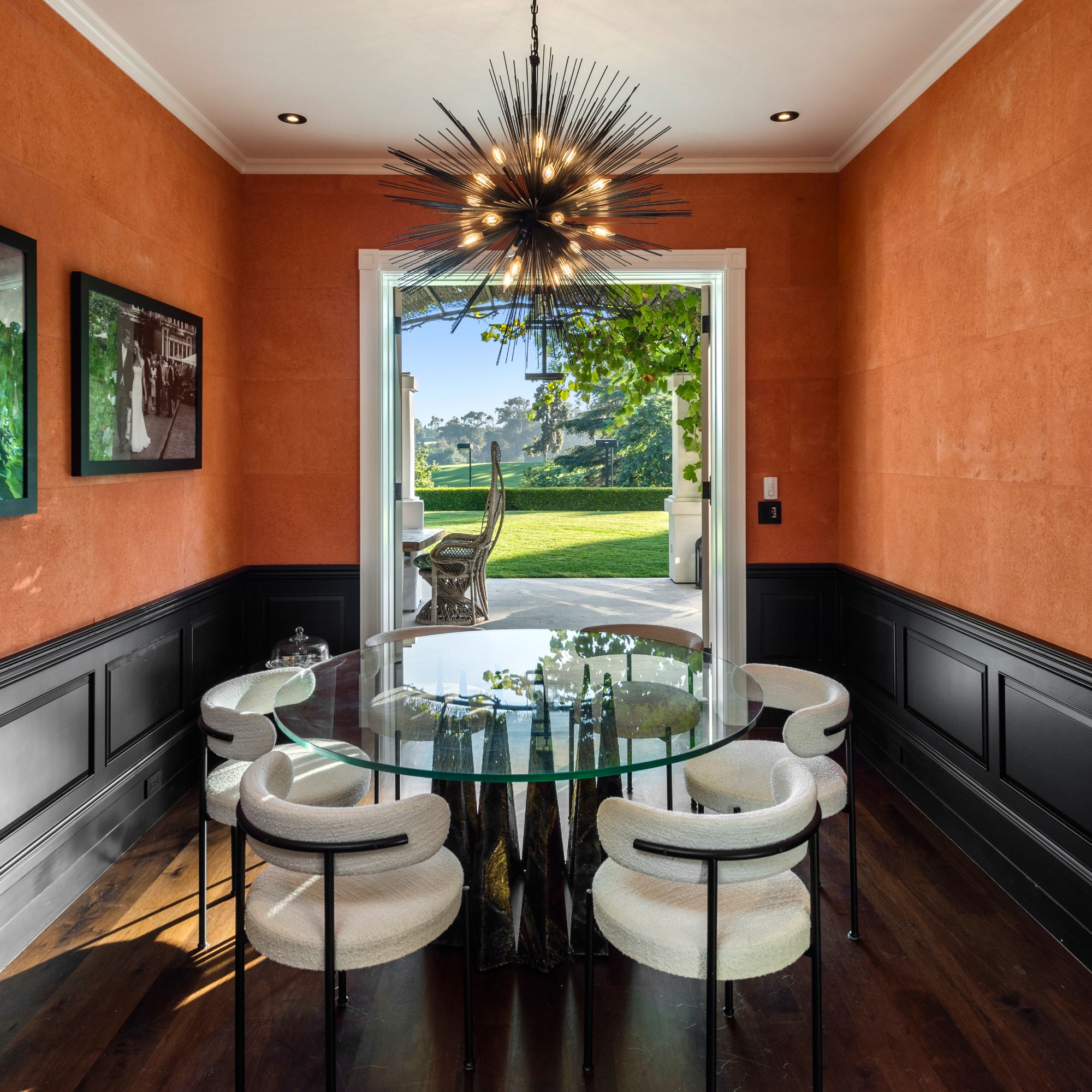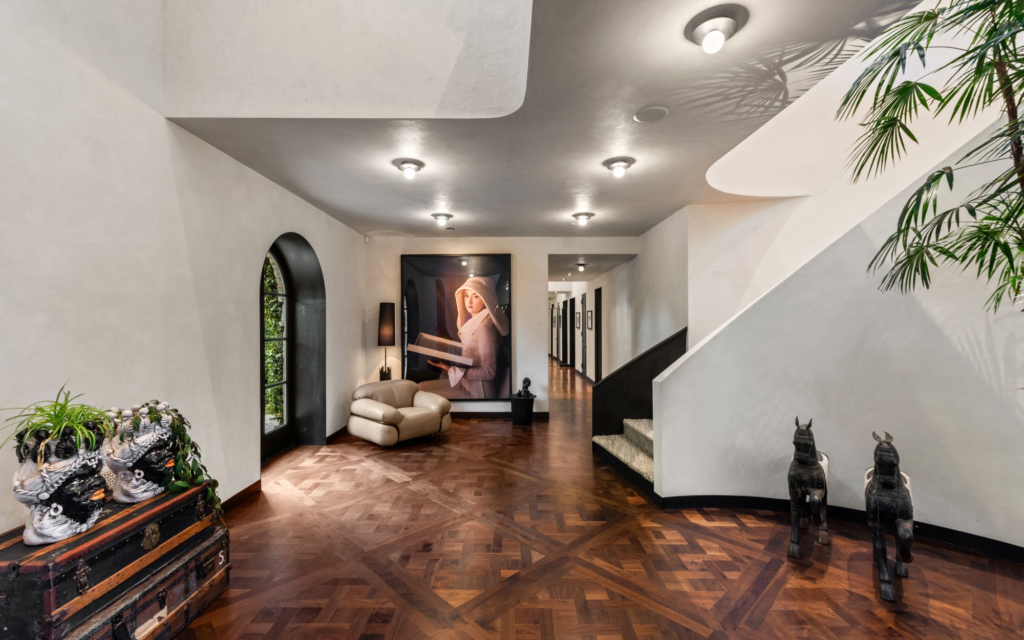 Set beside the exclusive LA Country Club, this expansive 1-acre gated estate has been meticulously remodeled to blend old-world glamour with modern elegance. Set back behind a grand, gated motor court, the property ensures unparalleled security and privacy. A grand two-story foyer with warm tones, natural light, and graceful curved lines creates an inviting and sophisticated atmosphere. To the right, a formal living room with a fireplace sets the stage for elegant entertaining, while an office with a bar and coffered ceiling adds timeless charm. Multiple gathering spaces, including a dining room overlooking the manicured grounds, flow seamlessly throughout. The opposite wing features a gourmet kitchen with dual islands and top-of-the-line appliances, a breakfast nook, and a cozy family room that opens to an outdoor dining area shaded by mature grapevines. Upstairs, the expansive primary suite features a fireplace, dual walk-in closets and bathrooms, and a private balcony overlooking the backyard and golf course. Five additional bedroom suites offer ample space for family and guests. Outside, a private oasis awaits. Lush landscaping surrounds a large patio for dining al fresco, firepit, flat grassy lawn, resort-like pool with spa, pool house with additional patio space, tennis court with lights, and an additional deck area that overlooks the impeccably landscaped fifth fairway. Offering a seamless blend of luxurious living and resort-style amenities, this estate provides an unparalleled opportunity to experience the epitome of refined elegance in one of Los Angeles’ most coveted locations.