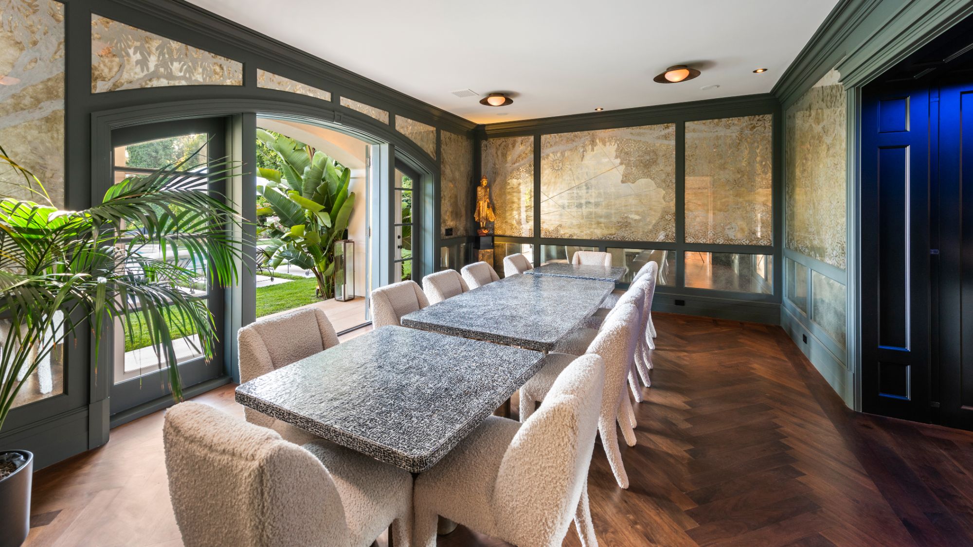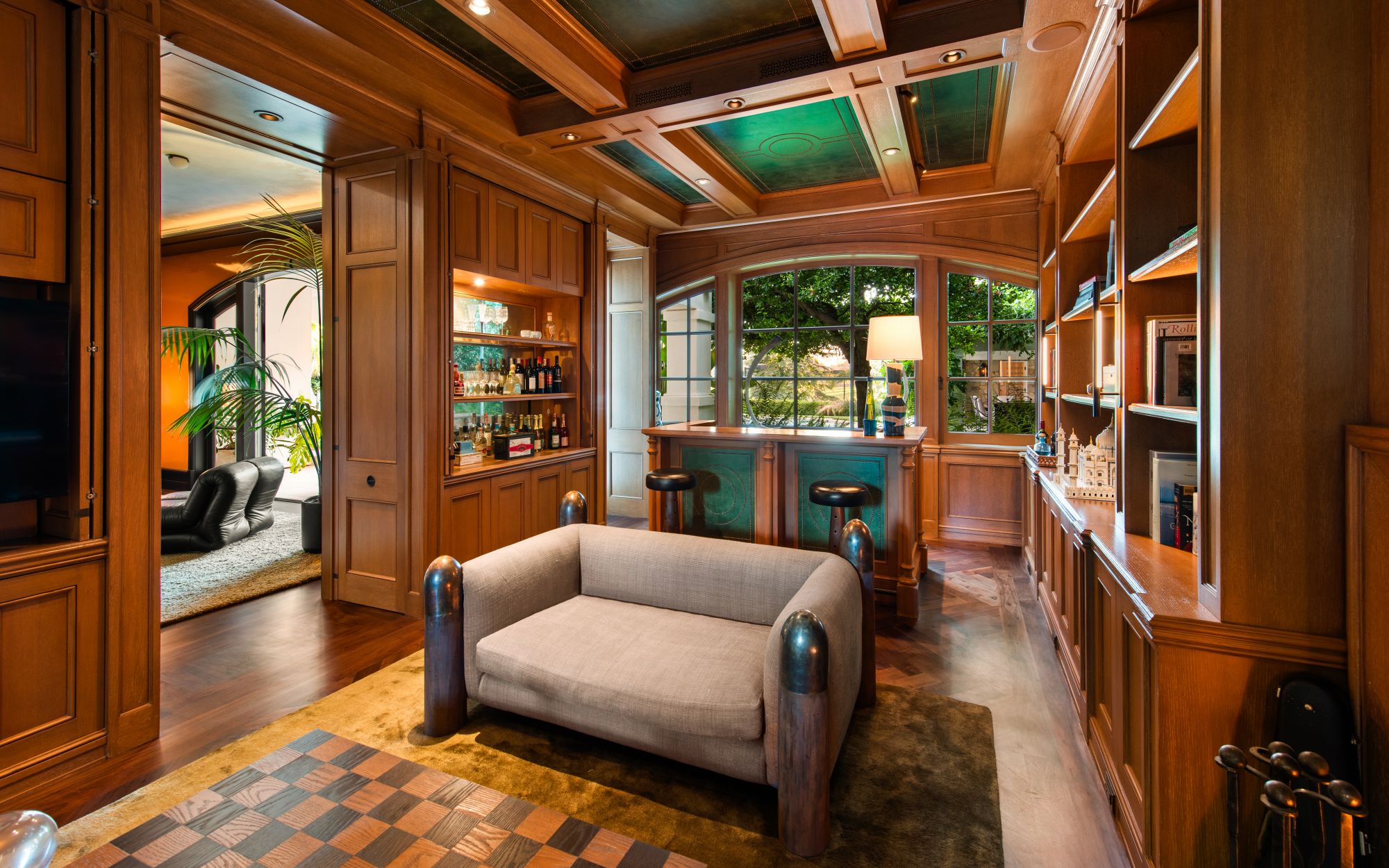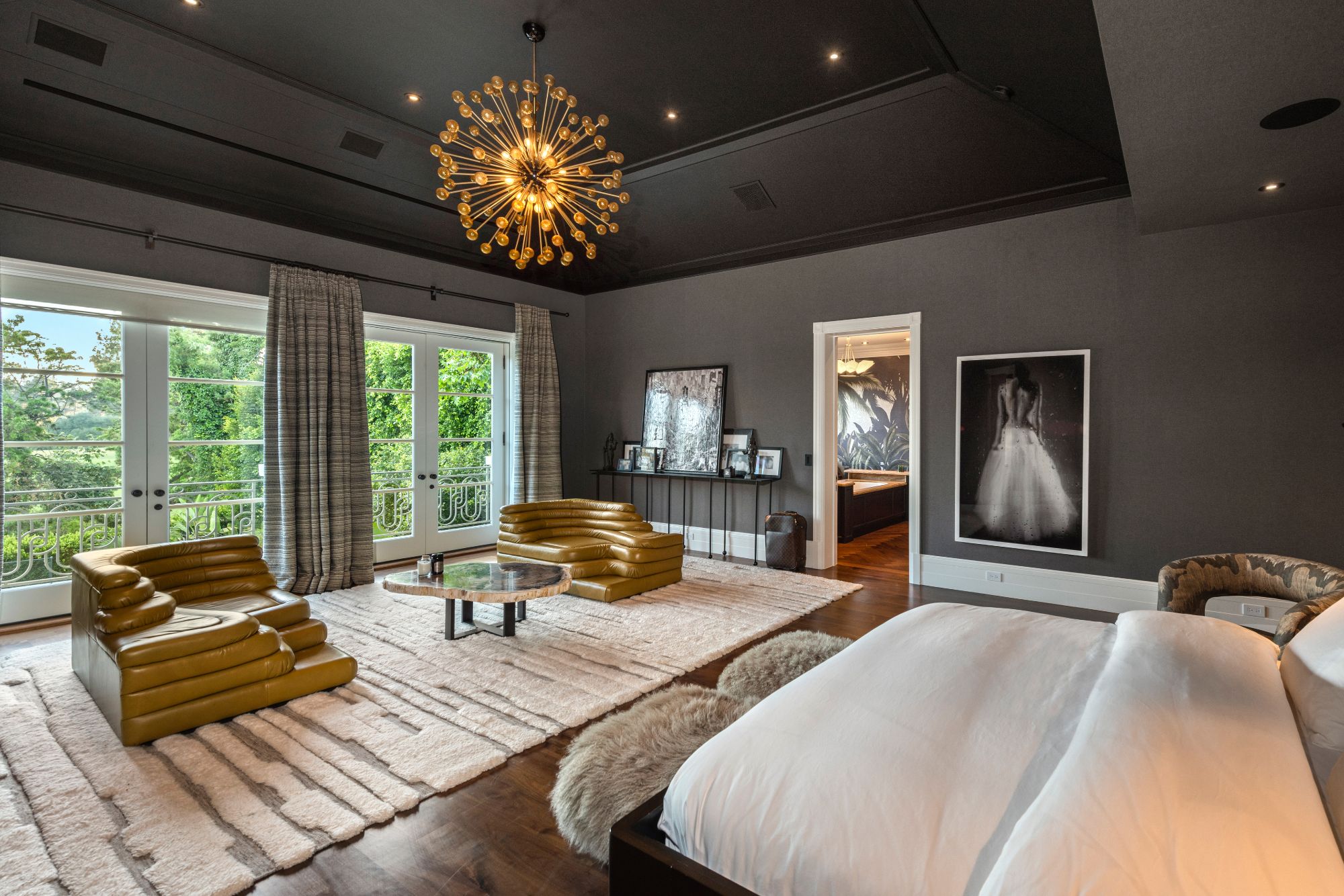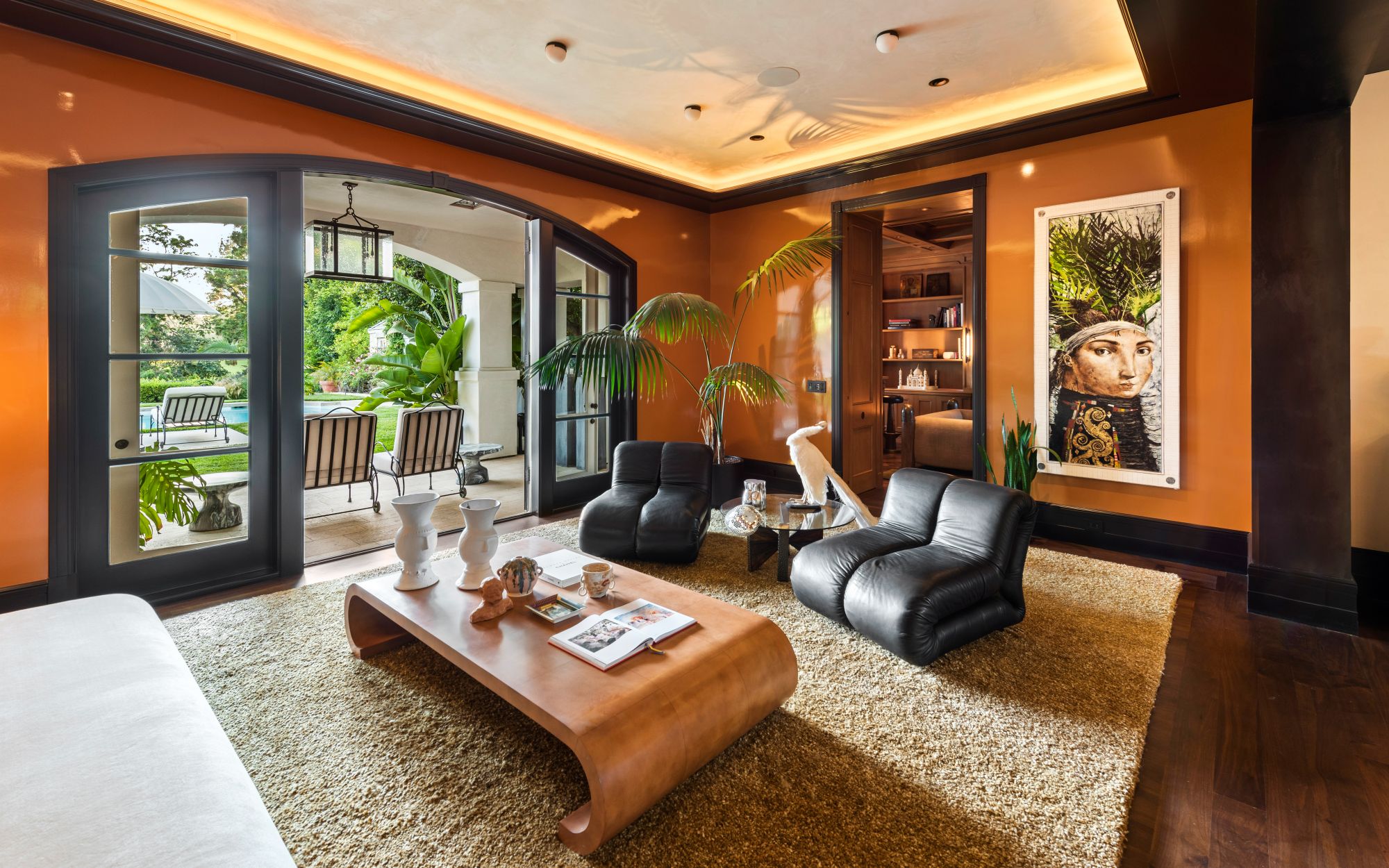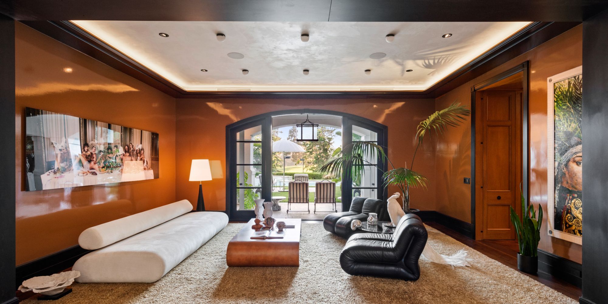 Set beside the exclusive LA Country Club, this expansive 1-acre gated estate has been meticulously remodeled to blend old-world glamour with modern elegance. Set back behind a grand, gated motor court, the property ensures unparalleled security and privacy. A grand two-story foyer with warm tones, natural light, and graceful curved lines creates an inviting and sophisticated atmosphere. To the right, a formal living room with a fireplace sets the stage for elegant entertaining, while an office with a bar and coffered ceiling adds timeless charm. Multiple gathering spaces, including a dining room overlooking the manicured grounds, flow seamlessly throughout. The opposite wing features a gourmet kitchen with dual islands and top-of-the-line appliances, a breakfast nook, and a cozy family room that opens to an outdoor dining area shaded by mature grapevines. Upstairs, the expansive primary suite features a fireplace, dual walk-in closets and bathrooms, and a private balcony overlooking the backyard and golf course. Five additional bedroom suites offer ample space for family and guests. Outside, a private oasis awaits. Lush landscaping surrounds a large patio for dining al fresco, firepit, flat grassy lawn, resort-like pool with spa, pool house with additional patio space, tennis court with lights, and an additional deck area that overlooks the impeccably landscaped fifth fairway. Offering a seamless blend of luxurious living and resort-style amenities, this estate provides an unparalleled opportunity to experience the epitome of refined elegance in one of Los Angeles’ most coveted locations.