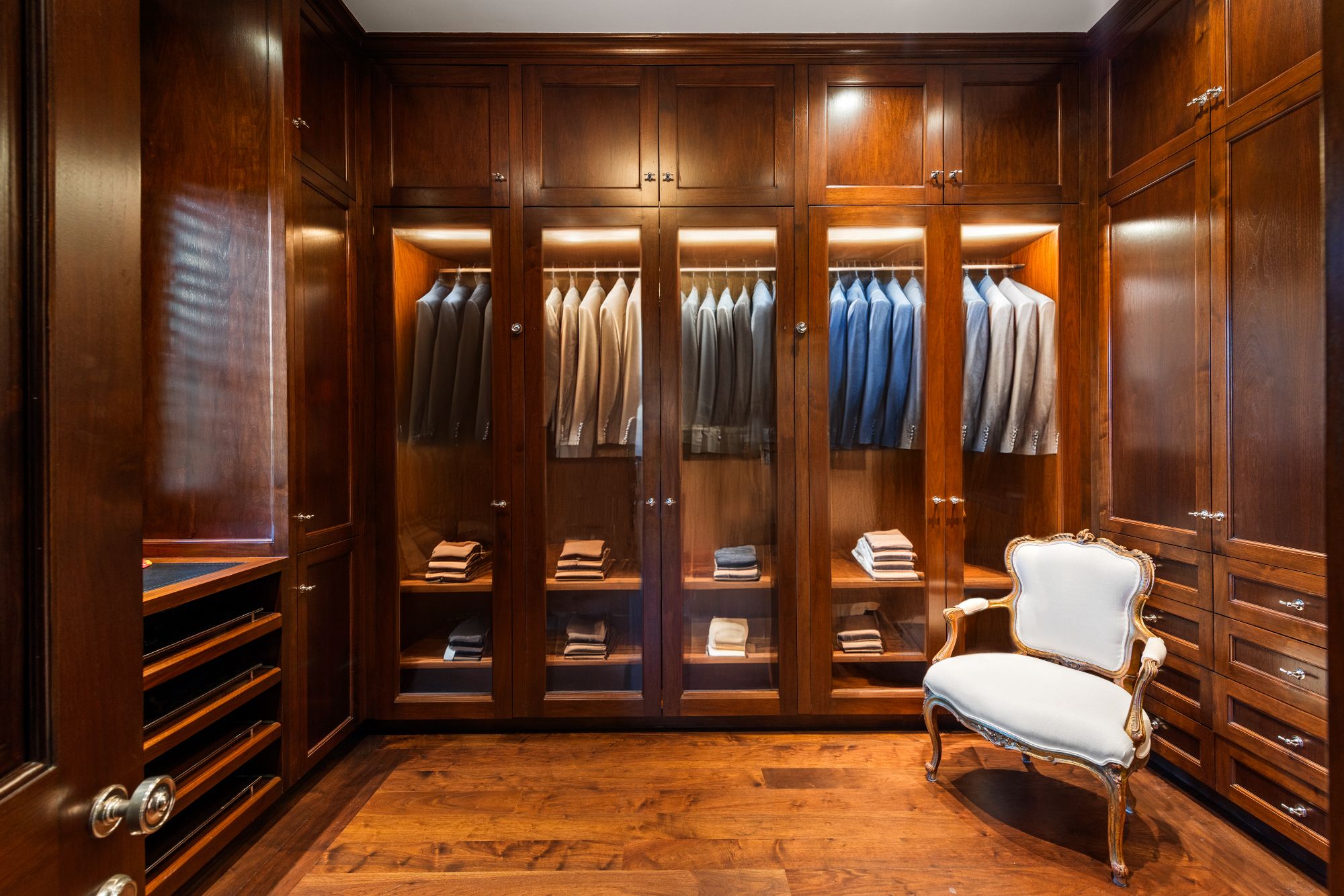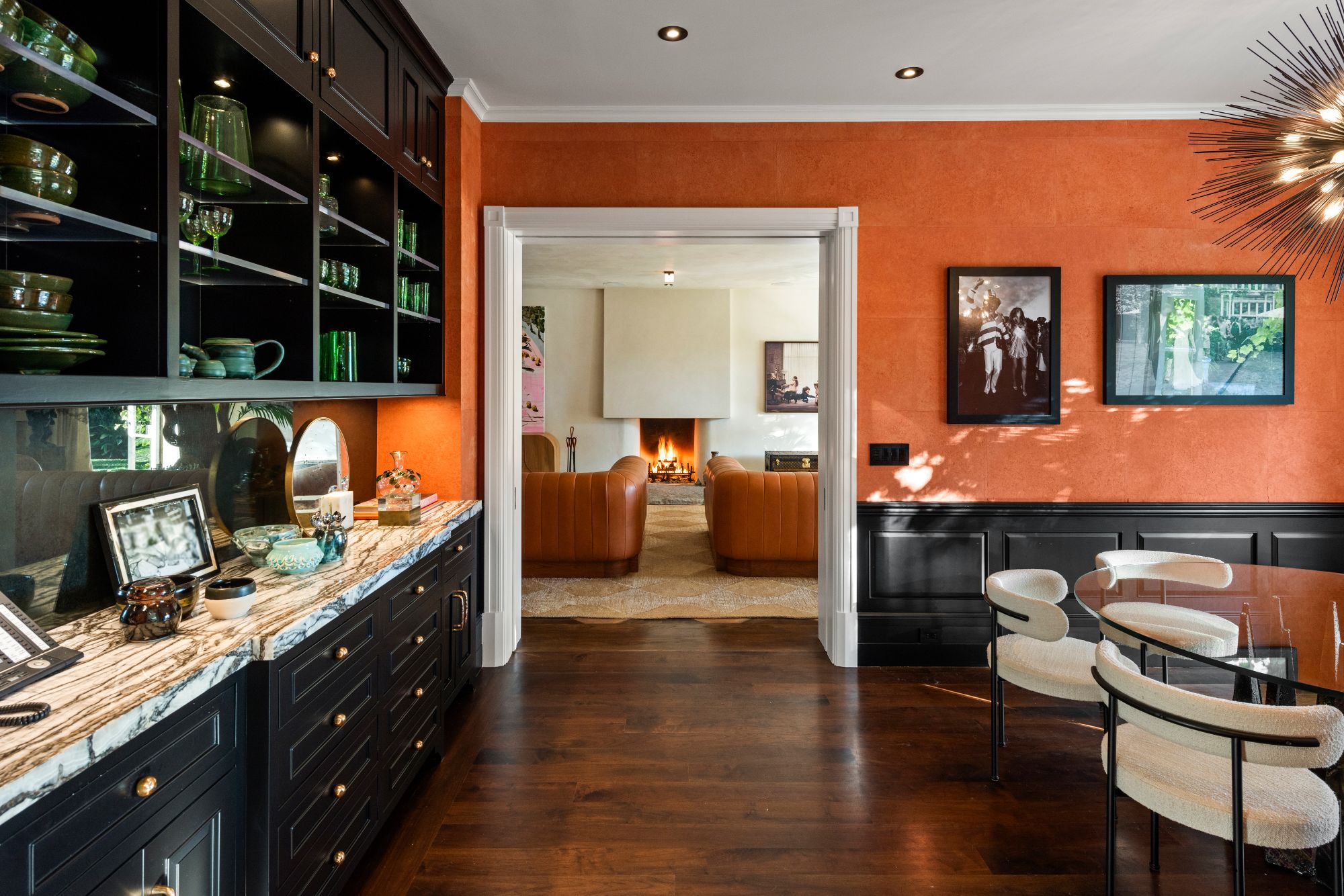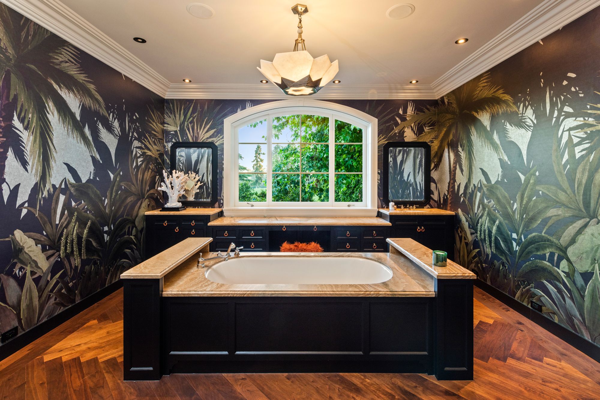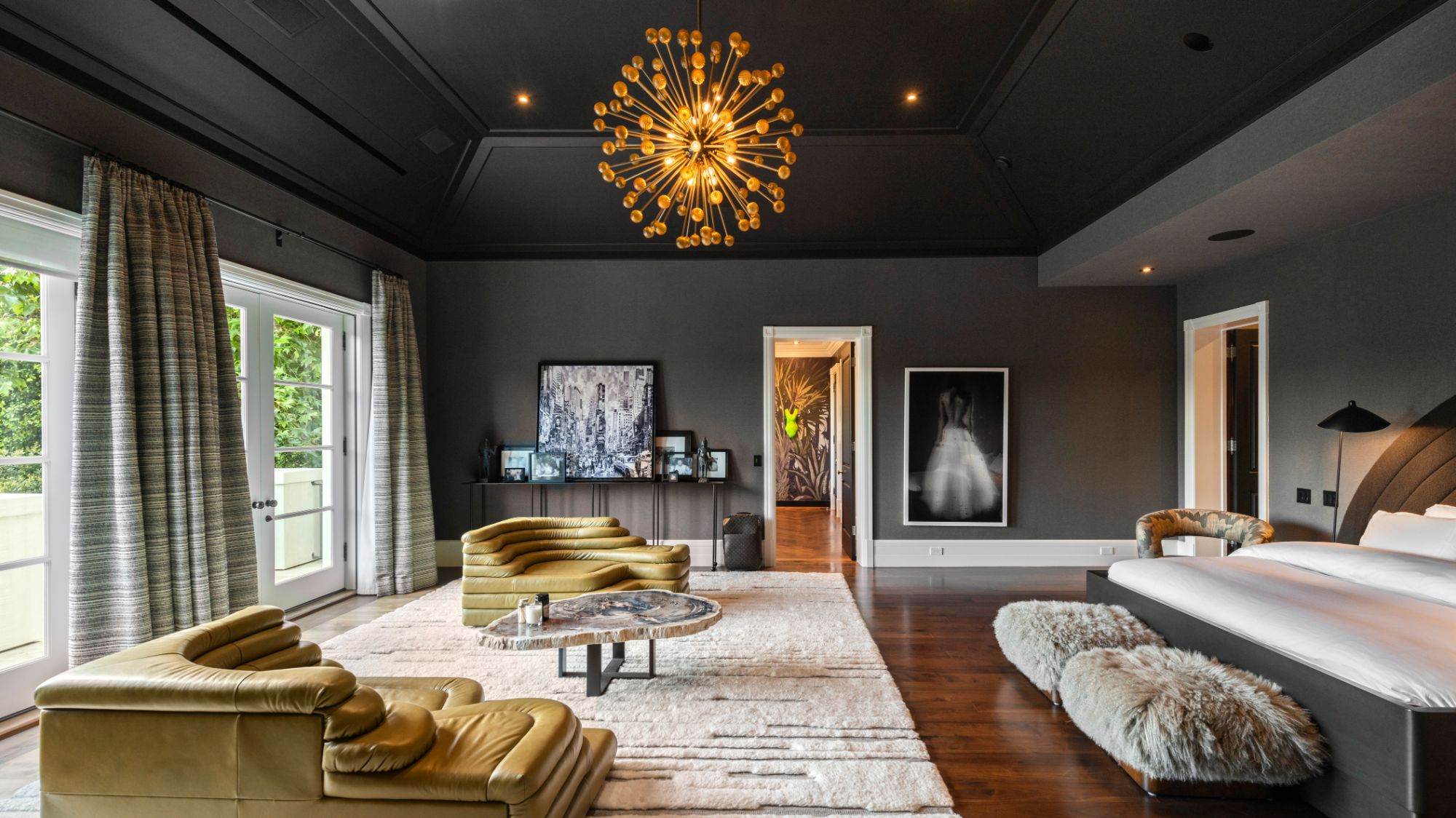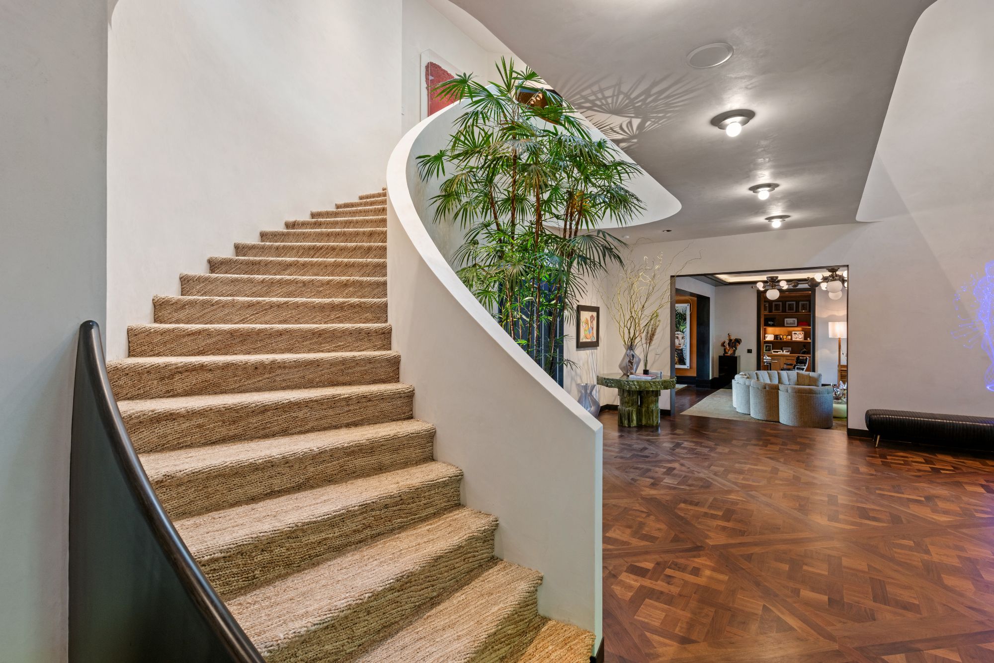 Set beside the exclusive LA Country Club, this expansive 1-acre gated estate has been meticulously remodeled to blend old-world glamour with modern elegance. Set back behind a grand, gated motor court, the property ensures unparalleled security and privacy. A grand two-story foyer with warm tones, natural light, and graceful curved lines creates an inviting and sophisticated atmosphere. To the right, a formal living room with a fireplace sets the stage for elegant entertaining, while an office with a bar and coffered ceiling adds timeless charm. Multiple gathering spaces, including a dining room overlooking the manicured grounds, flow seamlessly throughout. The opposite wing features a gourmet kitchen with dual islands and top-of-the-line appliances, a breakfast nook, and a cozy family room that opens to an outdoor dining area shaded by mature grapevines. Upstairs, the expansive primary suite features a fireplace, dual walk-in closets and bathrooms, and a private balcony overlooking the backyard and golf course. Five additional bedroom suites offer ample space for family and guests. Outside, a private oasis awaits. Lush landscaping surrounds a large patio for dining al fresco, firepit, flat grassy lawn, resort-like pool with spa, pool house with additional patio space, tennis court with lights, and an additional deck area that overlooks the impeccably landscaped fifth fairway. Offering a seamless blend of luxurious living and resort-style amenities, this estate provides an unparalleled opportunity to experience the epitome of refined elegance in one of Los Angeles’ most coveted locations.