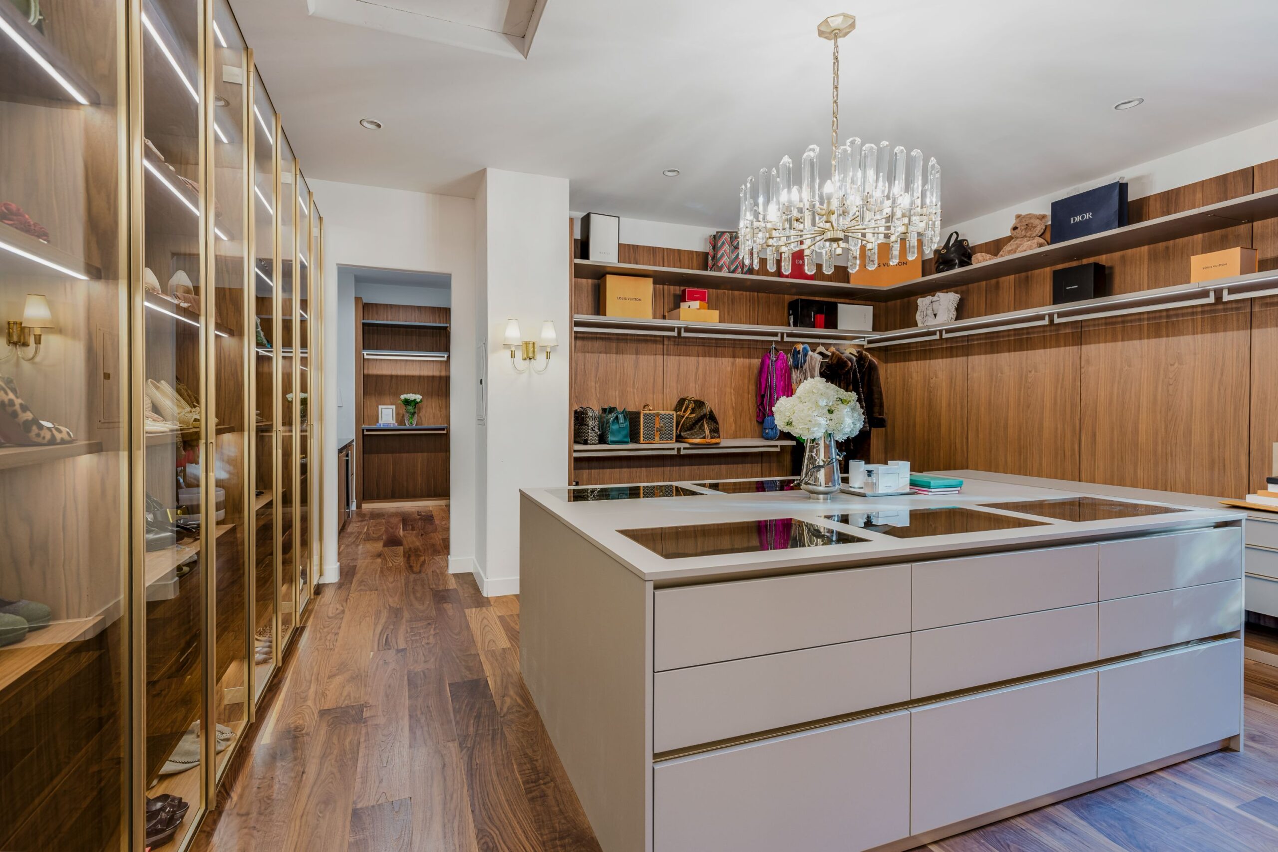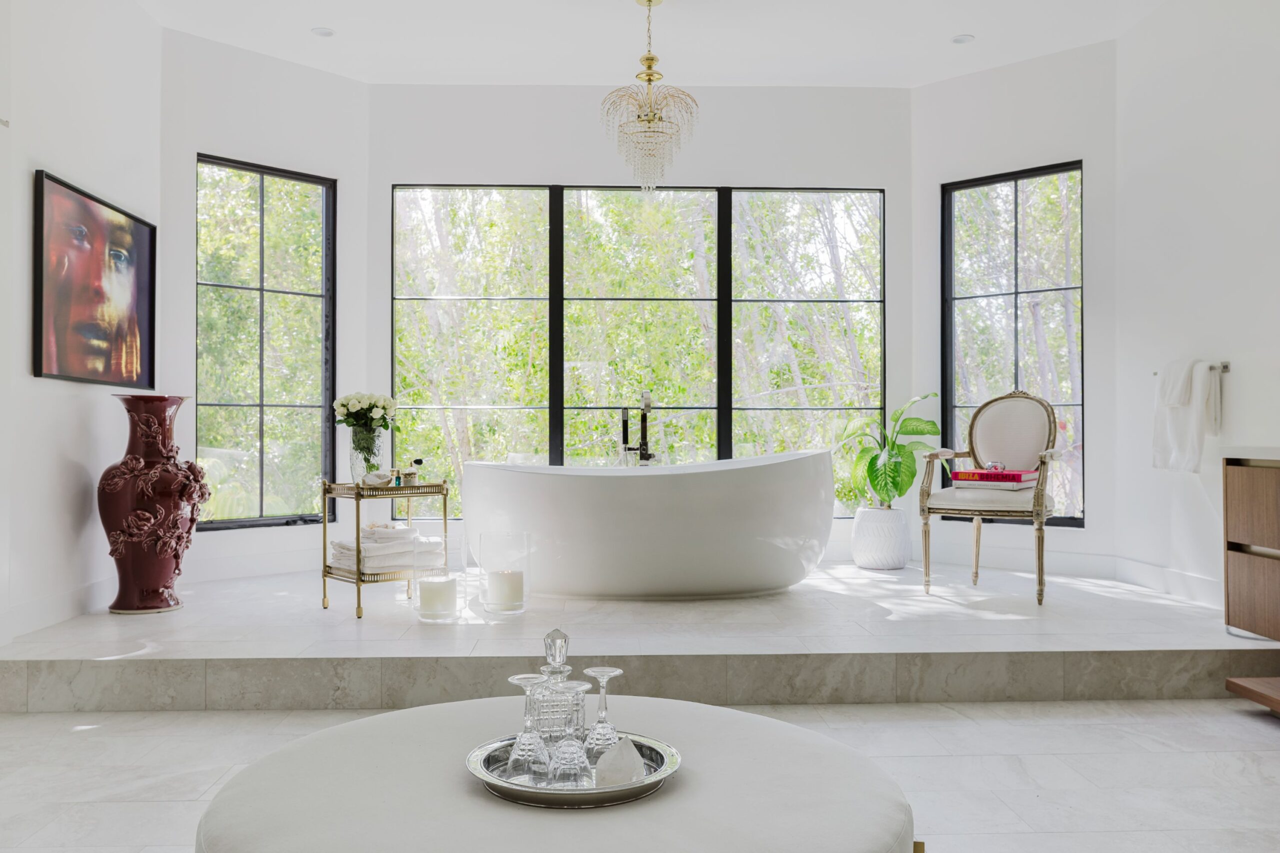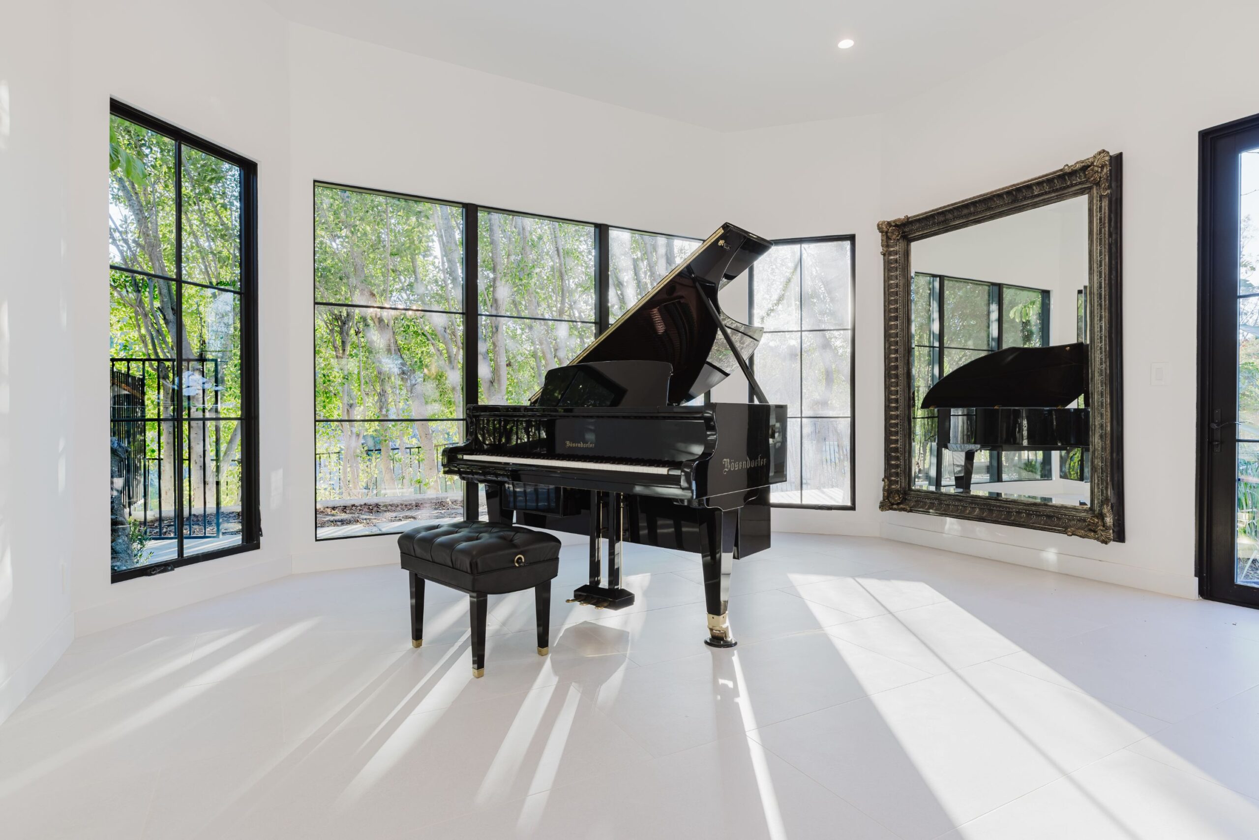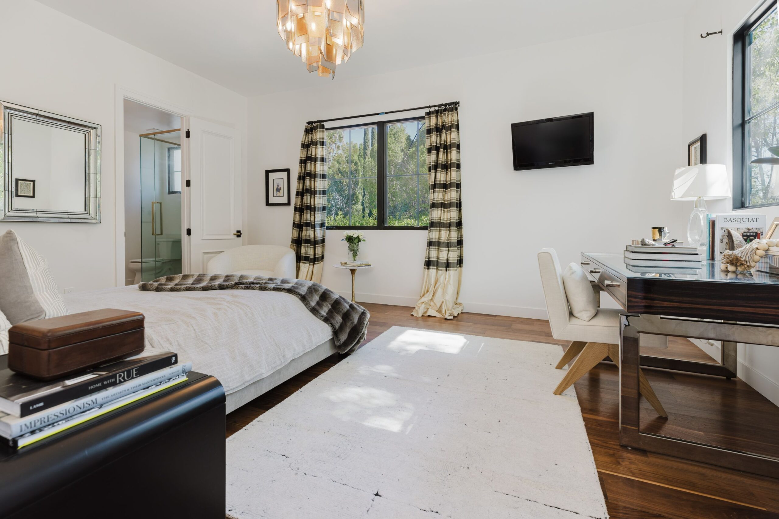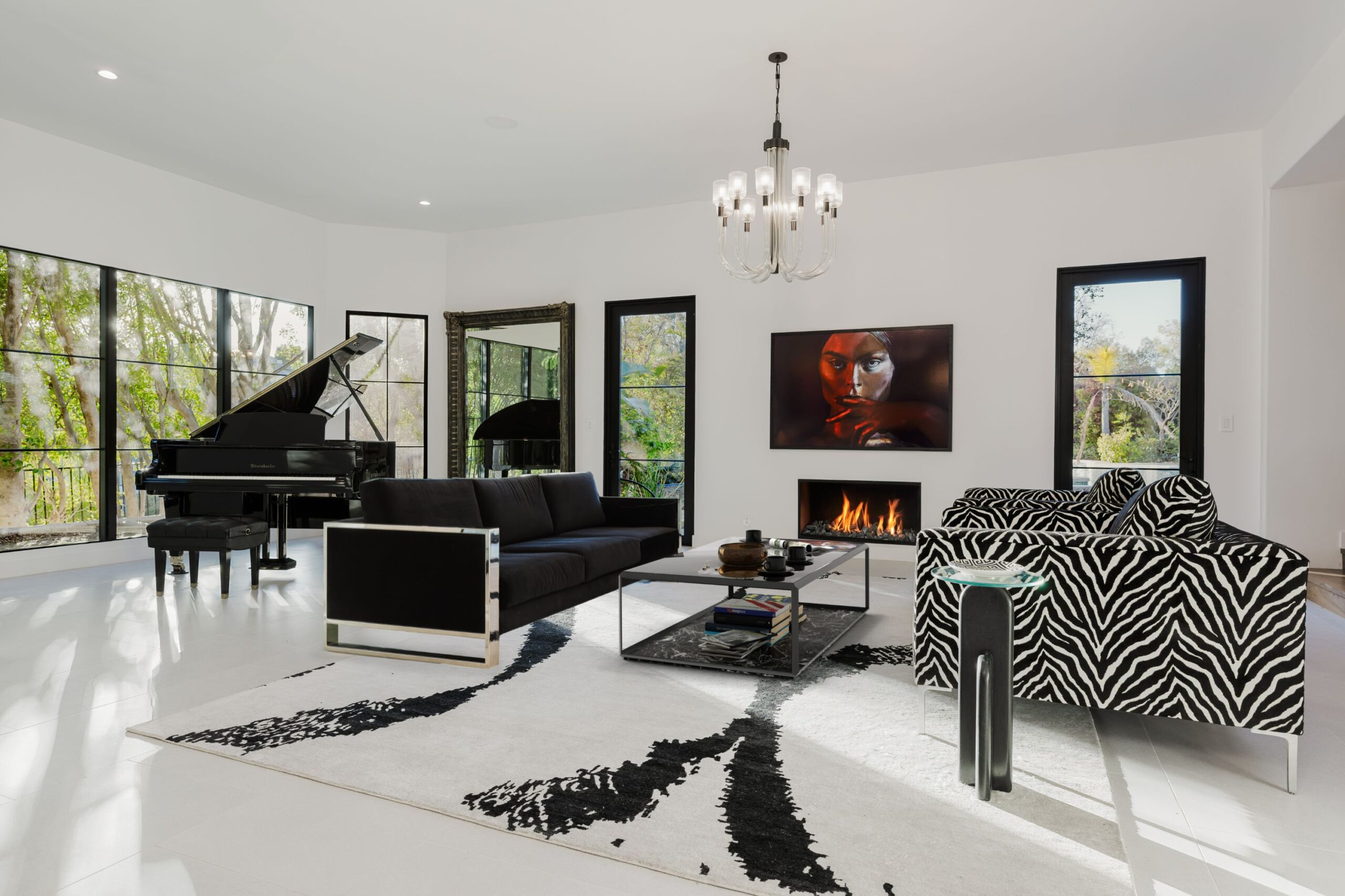 Located in the prestigious, gated community of Hidden Hills West, this fully remodeled estate spans 2.58 acres and offers a rare blend of privacy, luxury, and modern living. With 6 bedrooms, 6 bathrooms, and 11,120 square feet of living space, this home is designed to impress at every turn. As you approach, a long gated private driveway leads to a massive motor court, setting the stage for a grand entry. The oversized wooden pivot door opens to a dramatic foyer with a sweeping spiral staircase, inviting you into the heart of the home. Expansive glass doors throughout allow natural light to flood the interior, creating a seamless connection between the indoors and the surrounding landscape. The chef's kitchen is a showstopper, with an oversized marble island featuring waterfall edges crafted from just two large pieces of book matched marble. The kitchen's chevron parquet wood floors flow effortlessly into the formal dining room, where pendant ring-shaped lighting adds an elegant touch. Top-of-the-line Miele appliances and Sub-Zero refrigerators make this space perfect for both everyday living and entertaining. The family room, with its soaring double-height ceilings and oversized windows, is flooded with light. For those who enjoy wine, a beautifully designed wine storage area and bar offer an elegant spot for entertaining guests. Upstairs, the expansive primary suite offers a luxurious retreat. The suite features two sitting area with a dual-sided fireplace, a private balcony with sweeping views of the lush backyard, and elegant chandeliers that enhance the room's sophisticated ambiance. The oversized primary bathroom includes a walk-in shower and steam room, along with a brand-new infrared sauna. The walk-in closet is a standout, with a massive center island for accessories and ample space for storage, including a dedicated area for shoes. A spacious junior primary suite provides a private living room and an en-suite bathroom, offering additional privacy and comfort. The upstairs office is designed to evoke the elegance of a Soho House, complete with a marble fireplace and a grand chandelier wrapped in gold leaf perfect for work or relaxation. The lower level of the home features a guest bedroom with an en-suite bathroom, a butler's kitchen, and a large living room with direct access to a piano entertainment room. Expansive glass doors lead out to the backyard, where the possibilities are endless for outdoor living and entertaining.The estate features a sprawling backyard with a custom pool and beautifully landscaped gardens, creating the perfect setting for outdoor relaxation and entertainment. Gated with secure code entry, this home ensures both privacy and peace of mind. It's a rare opportunity to experience luxurious living at its finest.