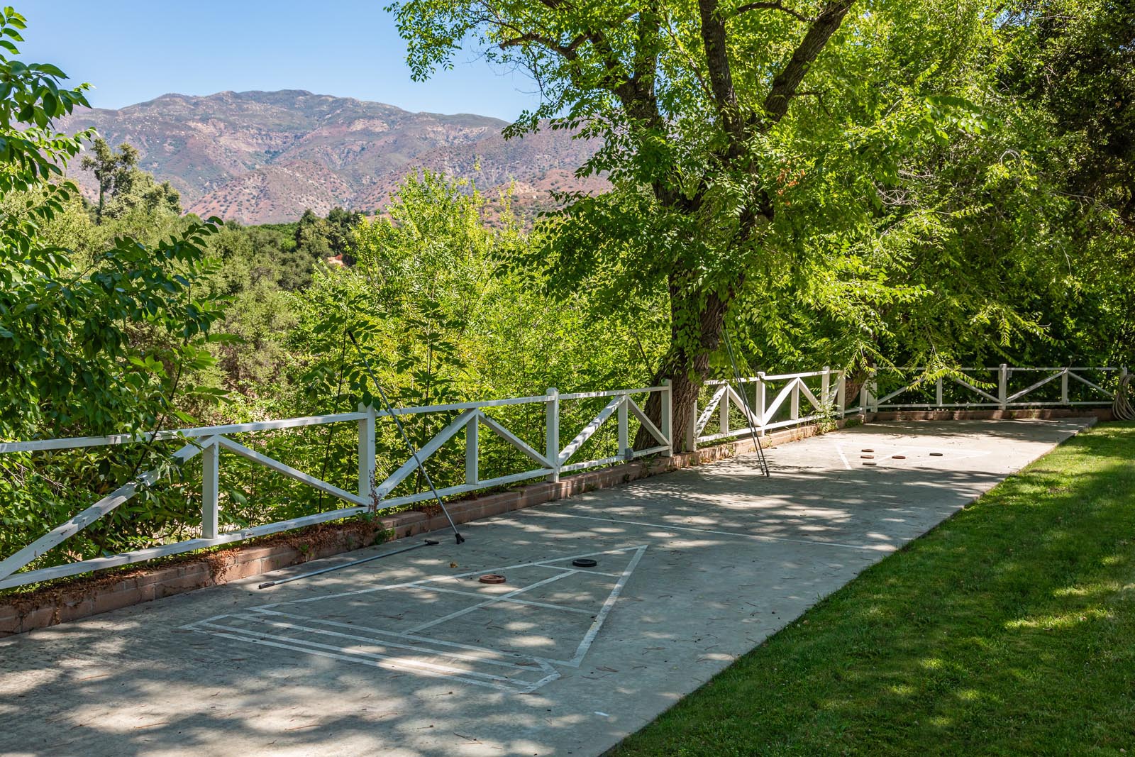 Welcome to Paradise Ranch, a 36.8-acre legacy estate where the beauty of Ojai meets the dream of living well. As you pass through the gates, you're instantly transported to a more intentional way of life, built around meaningful moments that last, in one of California's most coveted destinations. Nestled beneath the majestic Topa Topa Mountains, this rare offering is more than a property; it's a private haven where friends and family gather for long weekends, special occasions, and spontaneous escapes. At the heart of the compound stands an inviting, light-filled farmhouse, surrounded by lush lawns, white roses, lavender, stately cypress, and fruiting citrus, avocado, and olive trees. Sprawling flat fields invite your own flourishing vegetable garden; perfect for farm-to-table meals and weekend harvests. A charming guest house offers an idyllic retreat where loved ones feel at home. Wander to your private saloon, perfect for poker night, game day, or a nightcap. A sweeping heritage-style agricultural barn with an expansive workshop anchors the property with rustic charm and versatility. It's ideal for collectors, creatives, equestrians, or entrepreneurs. Just beyond sits an approximately 2,000-square-foot structure with electric and plumbing rough-ins, ready for whatever you envision: bunkhouse, office, studio, gym, or game room. Dream big, because there's room for it. Meandering trails lead to resort-style amenities, including a stunning pool and spa, a sports court, putting green, limestone fireplace, horseshoe pits, shuffleboard, a large pond with a fishing deck, and a seasonal creek that adds a storybook quality. This estate offers something for everyone. Every space invites connection and makes it hard to say goodbye. Whether you're working the land, savoring the legendary pink moment sunsets, or dining al fresco beneath the stars, the outdoors here isn't just a backdrop; it's an experience. Paradise Ranch is a once-in-a-lifetime opportunity to own an iconic Ojai estate where nature, peace, and privacy meet beauty, adventure, and joyful living. Paradise Ranch is your invitation to live the dream.