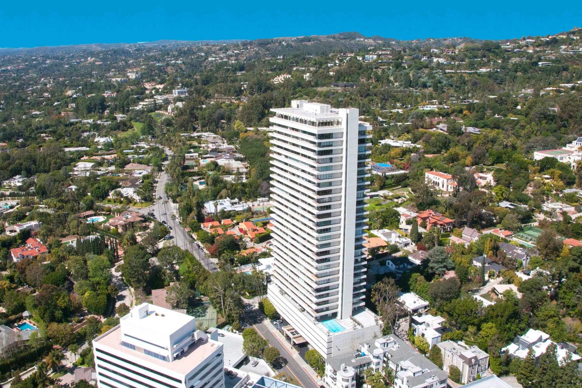 This completely renovated home in the sky redefines luxurious indoor/outdoor living in the Sierra Towers, the pinnacle of high-rise living with all the latest and greatest amenities and jetliner views. Sited in the best location in the city, walking distance to SOHO House, BOA, Prince St. Pizza, Beverly Hills & West Hollywood. Reflective of Jack Charney's renowned style, this state-of-the-art residence is blessed with an elegant mid-century exterior and soaring light-filled spaces with sliding Fleetwood doors. A brand new kitchen includes top of the line appliances. Take in the explosive city views on your personal sky lounge terrace. A stunning primary suite features marble bath and a balcony overlooking the LA skyline. Full-service amenities include a 24-hour security staff, valet parking, doorman, fitness center and outdoor pool. Live among the city's elite in this iconic building, the pinnacle of luxury high-rise living.