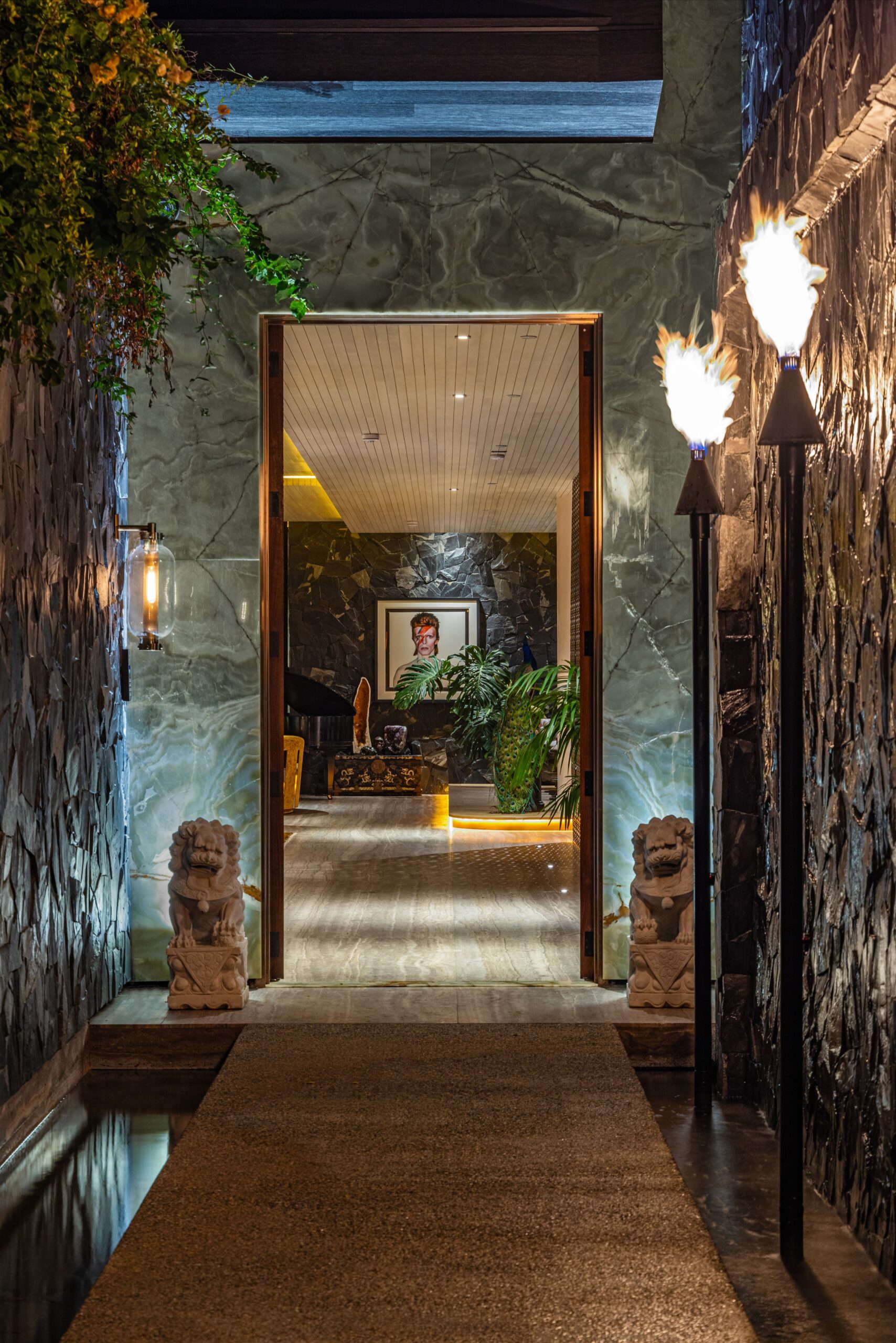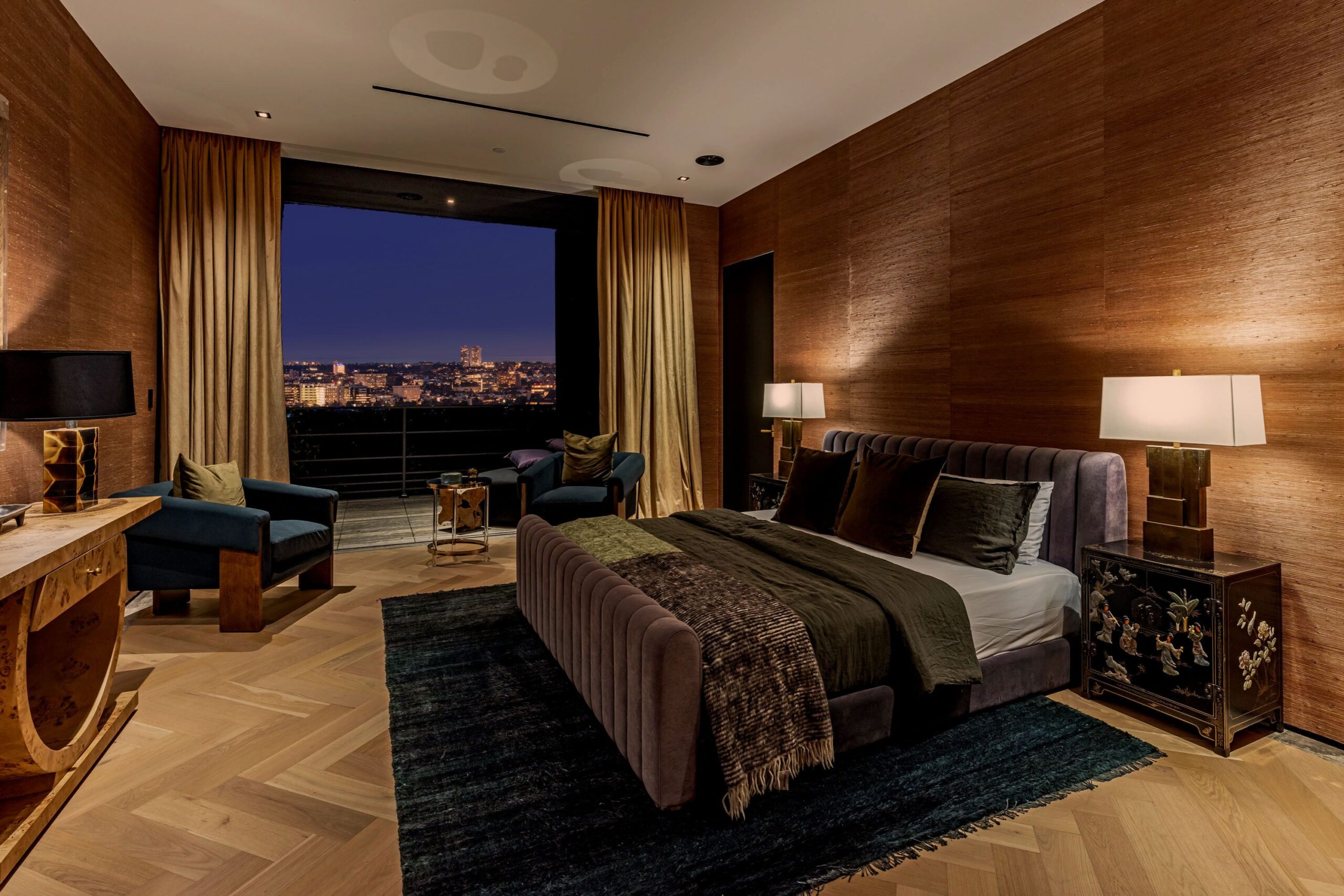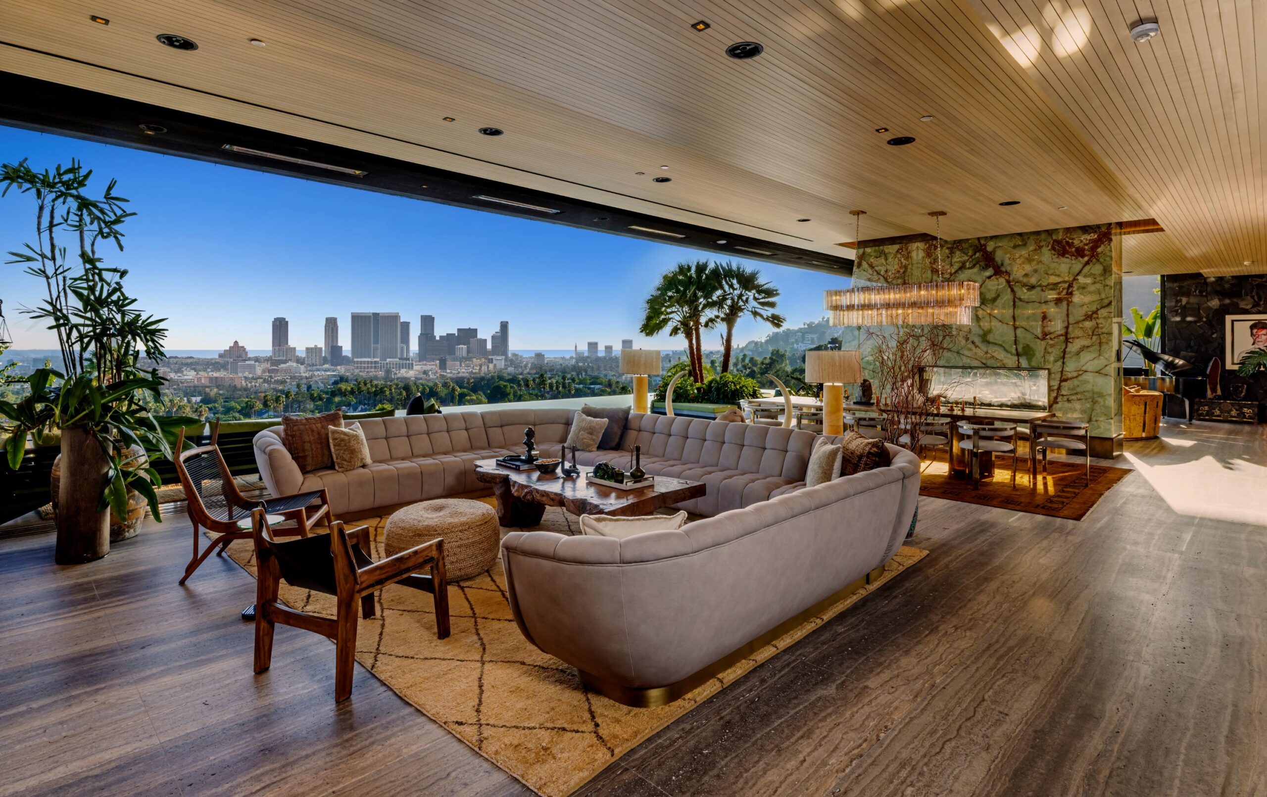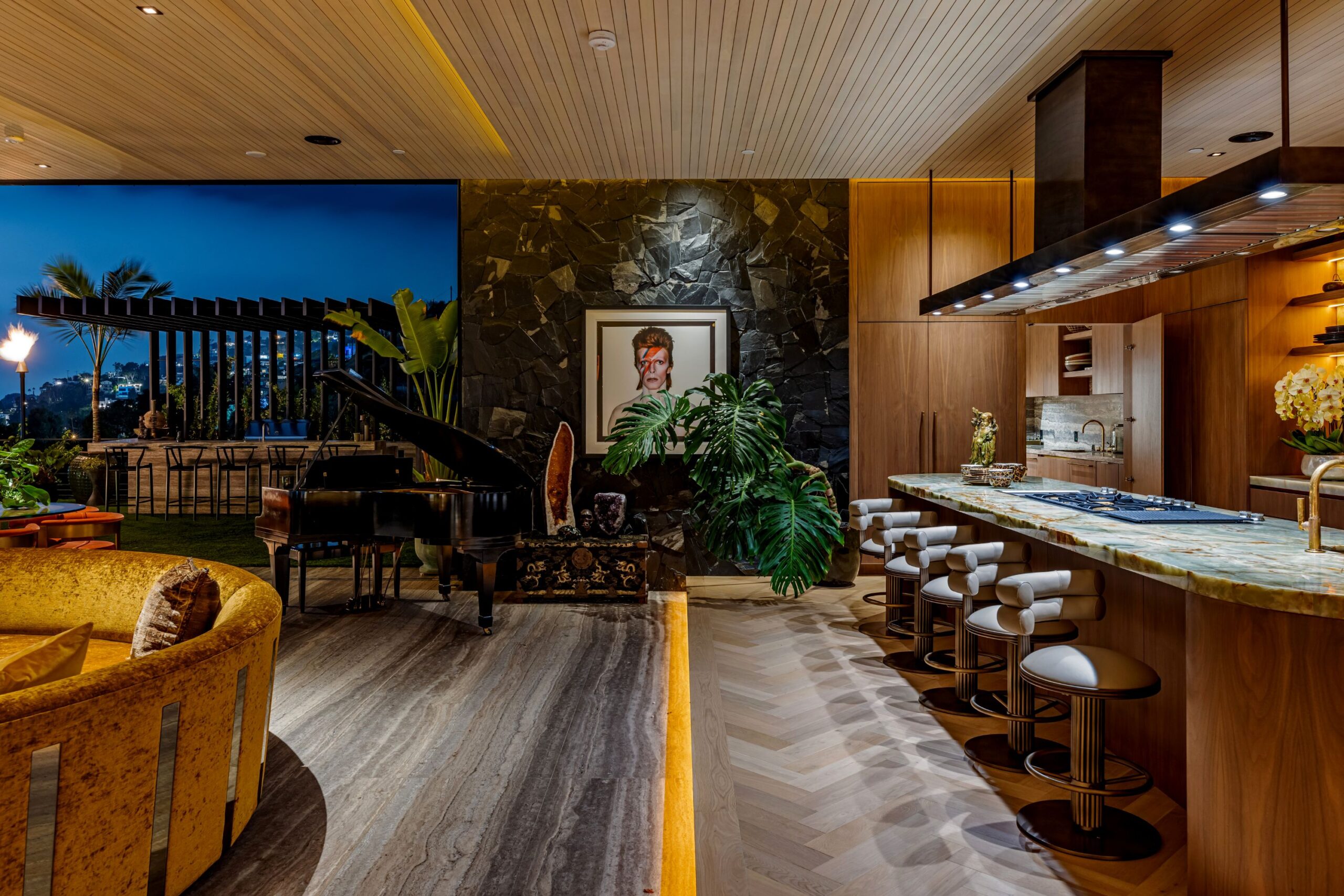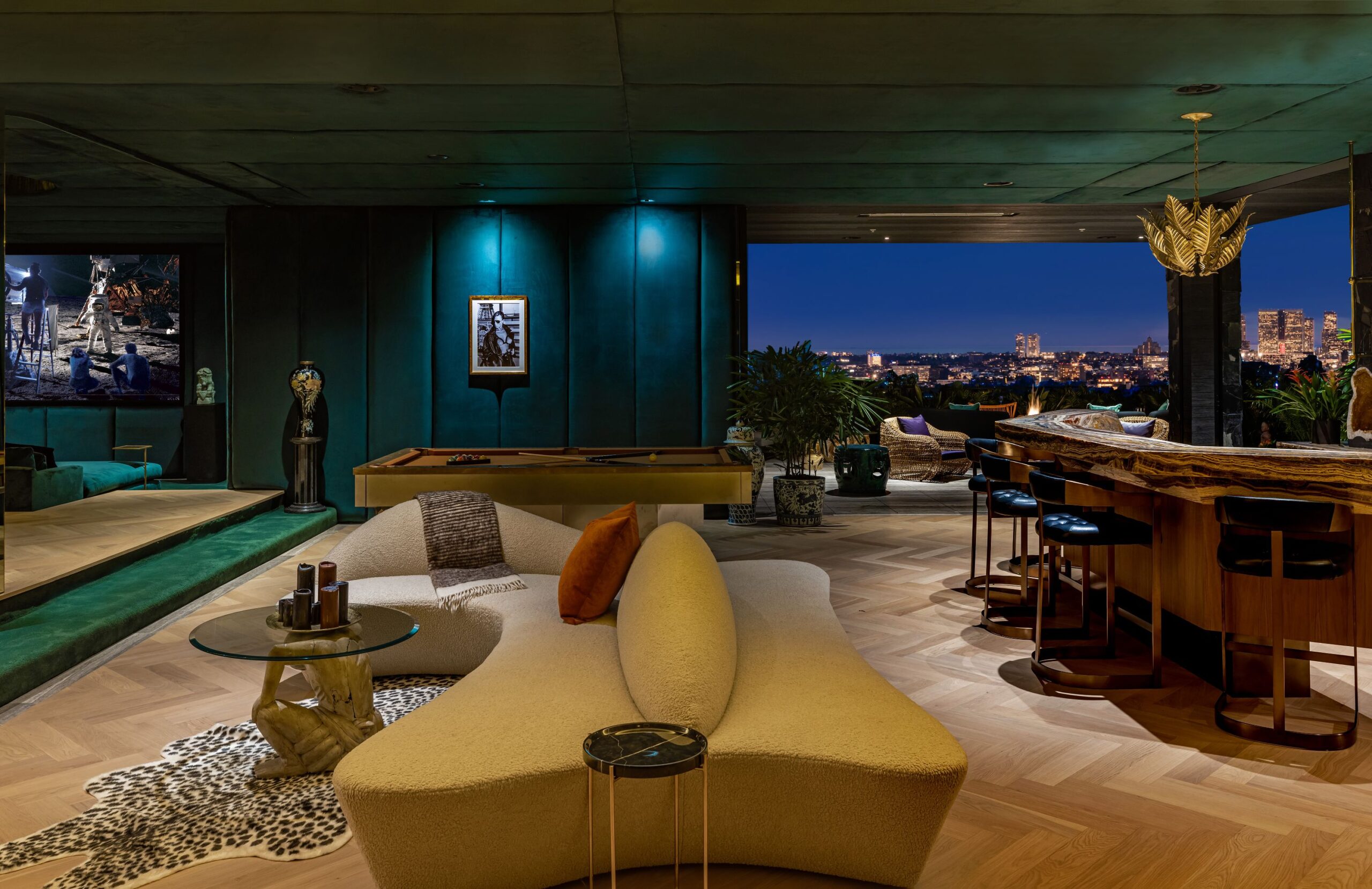 The Disco Volante Estate, an architectural modern paradise meticulously constructed over seven years, utilizing the finest materials and millions just in stonework alone. The only budget was there was no budget; everything had to be the best. Designed with an infusion of styles from Brazil to Asia and inspired by icons from rock 'n' roll to the legendary entertainment of the Sunset Strip. This is a one-of-a-kind home built for the most discerning buyer that wants quality design, function, flow, security, and privacy. Equipped with the latest amenities, and very own private speakeasy nightclub. Situated on a promontory lot with unobstructed front row views of the city from downtown out to the Pacific Ocean. This is a trophy estate you won't find anywhere else in the world or see replicated due to soaring construction costs, architectural design significance and the attention to detail. This unparalleled estate isn't just a home; it's a once-in-a-lifetime experience for you to ink any deal and redefine the art of living.
