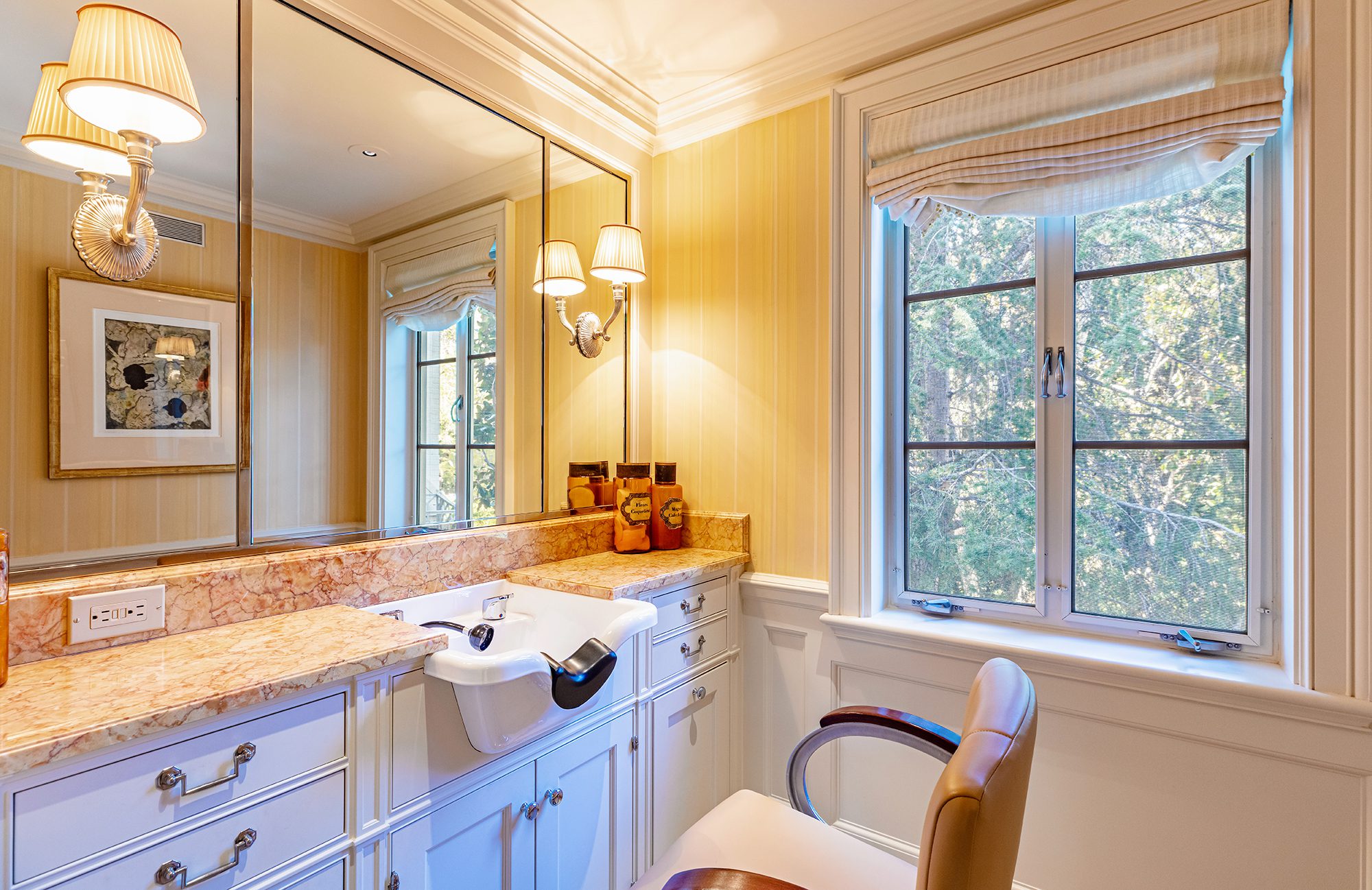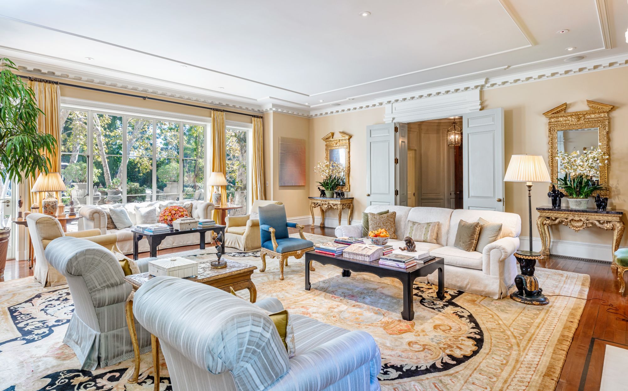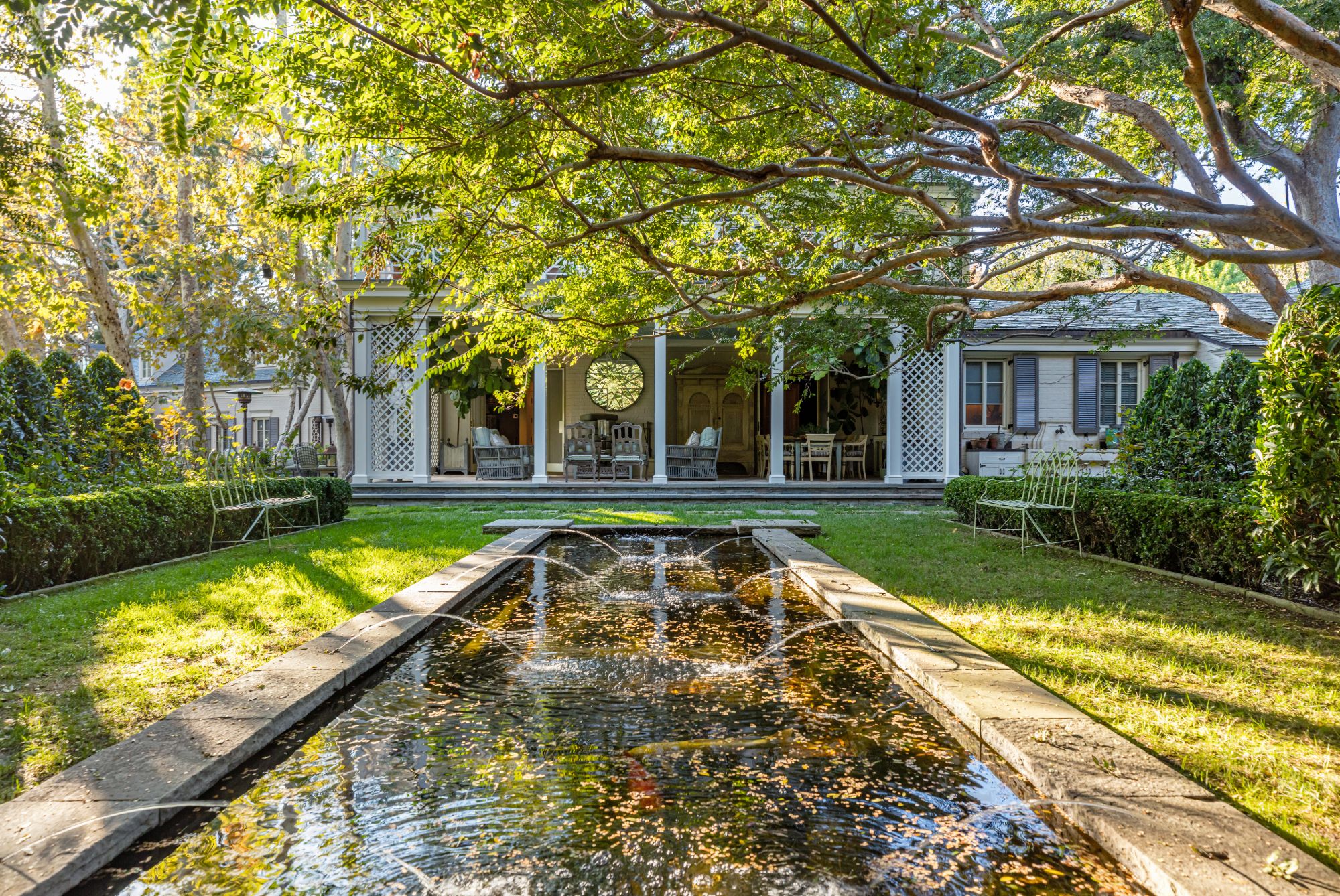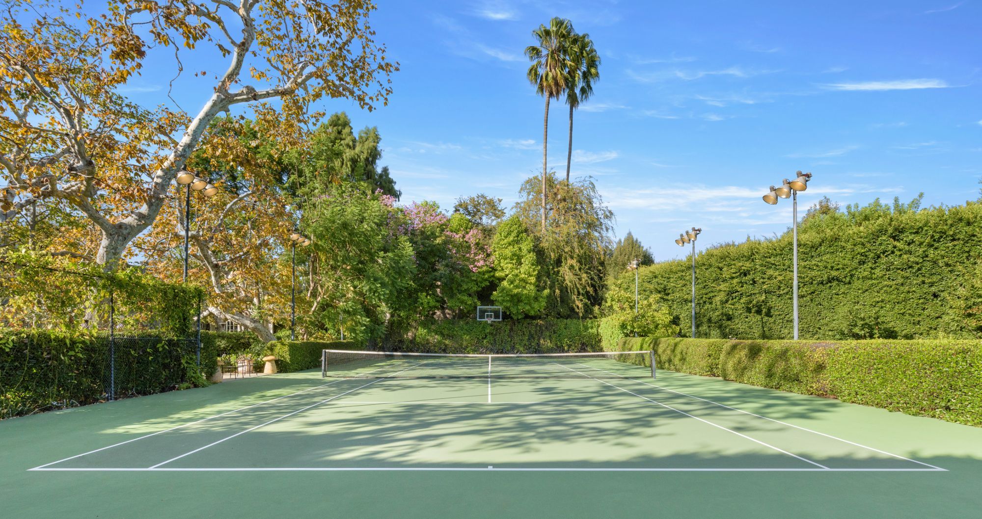 Nestled on 2 acres in Holmby Hills, The Faring Estate by renowned architect Oscar Shamamian stands as a legendary monument to Los Angeles history. Two gates lead to this European-inspired compound with a circular motor court and a secondary gated court/garage (15+ cars). Enter the main house to a stunning 2-story entry with spiral staircase, bright formal living and wood-paneled great room with office, bar & outdoor deck. Endless amenities featuring wine cellar, cozy breakfast room, 3rd-floor playroom and chef’s kitchen with butler’s pantry. Primary suite with dual closets/bathrooms, private sitting room & salon and 3 additional bedrooms with en suite baths. Sprawled on a lush flat lawn, show-stopping grounds with outdoor decks, saltwater pool, koi pond, vegetable/rose gardens, championship N/S tennis court and pool house with sauna & fitness center. Two fully-equipped guest houses; one an original piece by iconic architect John Elgin Woolf. Every convenience at your reach, entertain with ease and become a part of true L.A. history.