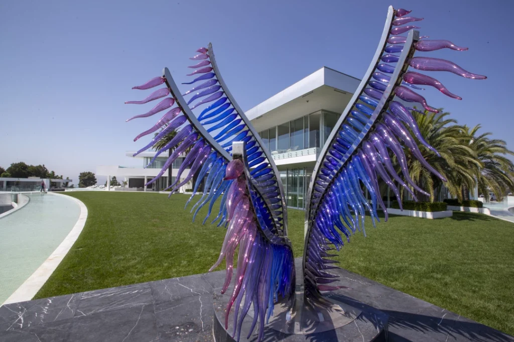 The One features custom-curated artworks including a rotating custom statue in the grand foyer by Mike Fields, custom sculpture from Italian glass artist Simone Cenedese outdoors, and galleries adorned with selections from Creative Art Partners.